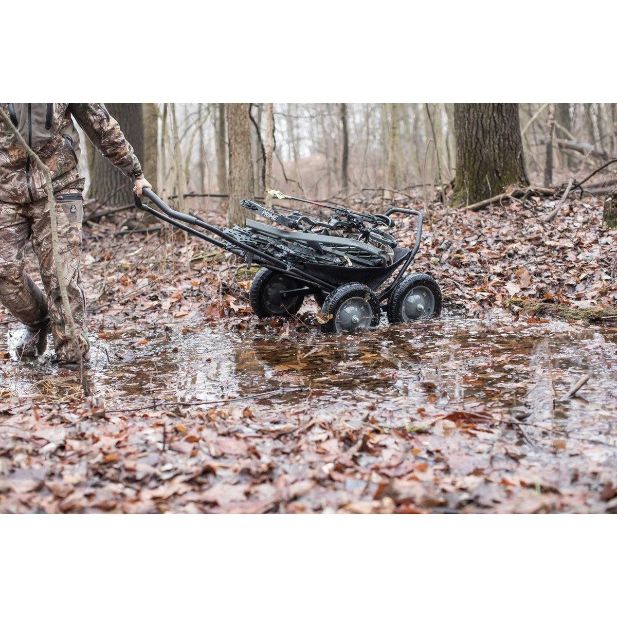The Hawk Hunting Crawler Multi-Use Cart is great for hauling deer, firewood, and other heavy loads. This versatile deer cart has Dual Rotating Axles that crawl and climb over objects in your way, making the cart a great option for hunters carting game through the woods. The Textilene DuraMesh sling allows you to carry a variety of loads, while oversized tubing better balances weight for easy hauling. For easy transport and storage, the Hawk Crawler deer cart folds compactly. Plus, the unique design keeps the center of the cart stabilized to prevent shifting and tipping. Built for convenient, versatile hauling, the Hawk Hunting Crawler Multi-Use Cart is the ideal way to cart your next deer through the woods.