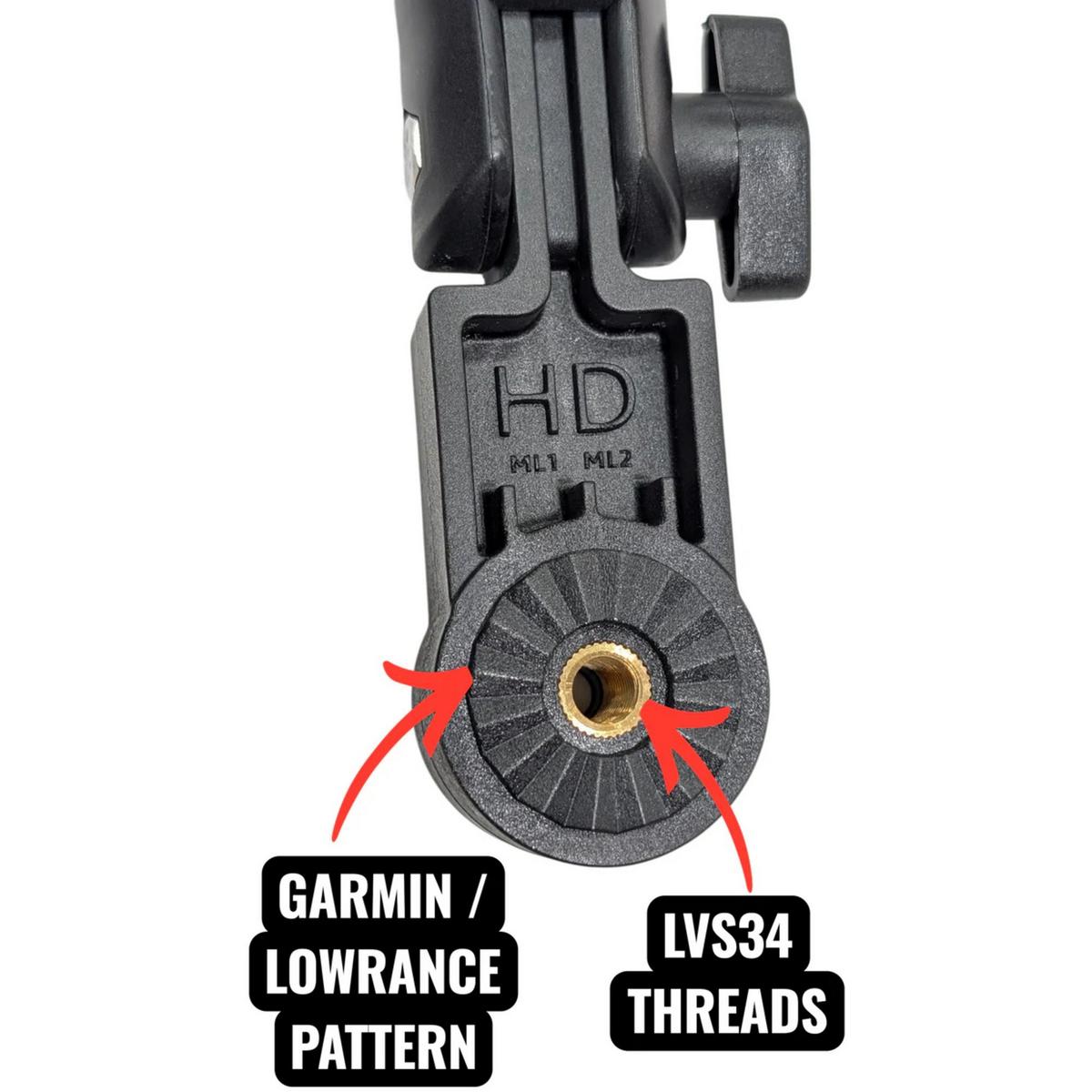 The HD Innovations MEGA live 1+2 connections kit allows you to bring the performance of your MEGA live forward facing transducer to the ice. This kit includes everything that you'll need to attach a MEGA live transducer to HD Multimount Transducer Mounts.