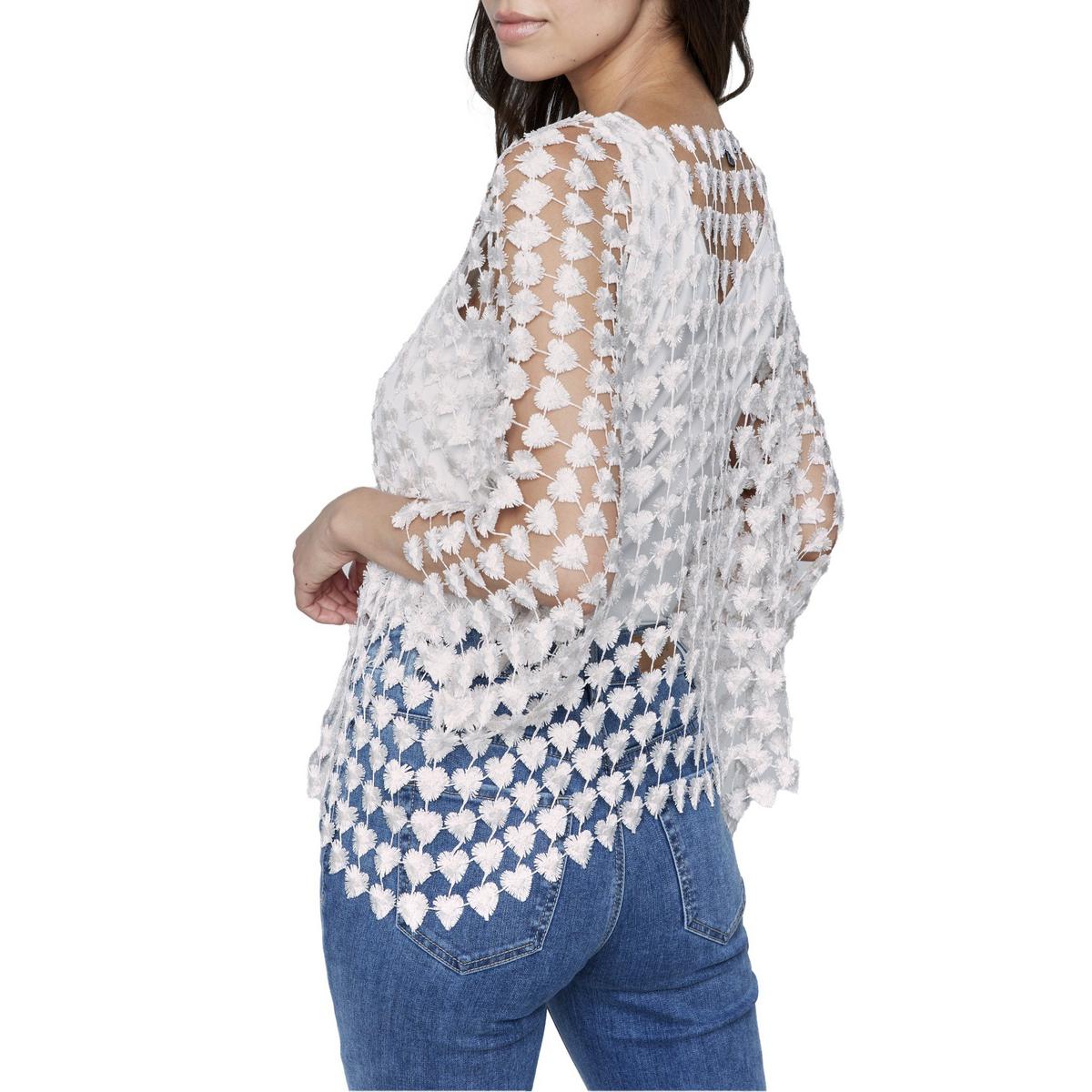 Women's Charlie B Heart Textured 3/4 Sleeve Square Neck Shirt
