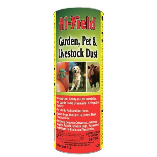 {"reviews":[],"offset":0,"limit":10,"total":0,"gtin":"732221322011"}"Full Description:\nLow odor insecticide. Provides both repelling and killing action of over 60 insects.\n\nFeatures:\n\u003cul>\n\u003cli>Broad-Use, Ready-To-Use Insecticide\u003c/li>\n\u003cli>Use On Dogs To Control Fleas, Ticks And Lice\u003c/li>\n\u003cli>Effectively Controls Cutworms, Japanese Beetles, Aphids, Squash Bugs, Armyworms And Others On Fruits and Vegetables\u003c/li>\n\u003c/ul>\n\nSpecifications:\n\u003cul>\n\u003cli>Sub Brand: Garden, Pet and Livestock Dust\u003c/li>\n\u003cli>Product Type: Insect Killer\u003c/li>\n\u003cli>Active Ingredient: Permethrin\u003c/li>\n\u003cli>Brand Name: Hi-Yield\u003c/li>\n\u003cli>Container Size: 1 pound\u003c/li>\n\u003cli>Odorless: No\u003c/li>\n\u003cli>Organic: No\u003c/li>\n\u003cli>Packaging Type: Bagged\u003c/li>\n\u003cli>Pest Type: All Insects\u003c/li>\n\u003cli>Product Form: Dust\u003c/li>\n\u003cli>Safe for Edibles: Yes\u003c/li>\n\u003cli>Indoor or Outdoor: Indoor and Outdoor\u003c/li>\n\u003cli>Concentrated or Ready to Use: Ready to Use\u003c/li>\n\u003cli>Safe for Children and Pets: Yes\u003c/li>\n\u003cli>For Hydroponic Use: No\u003c/li>\n\u003c/ul>\n"