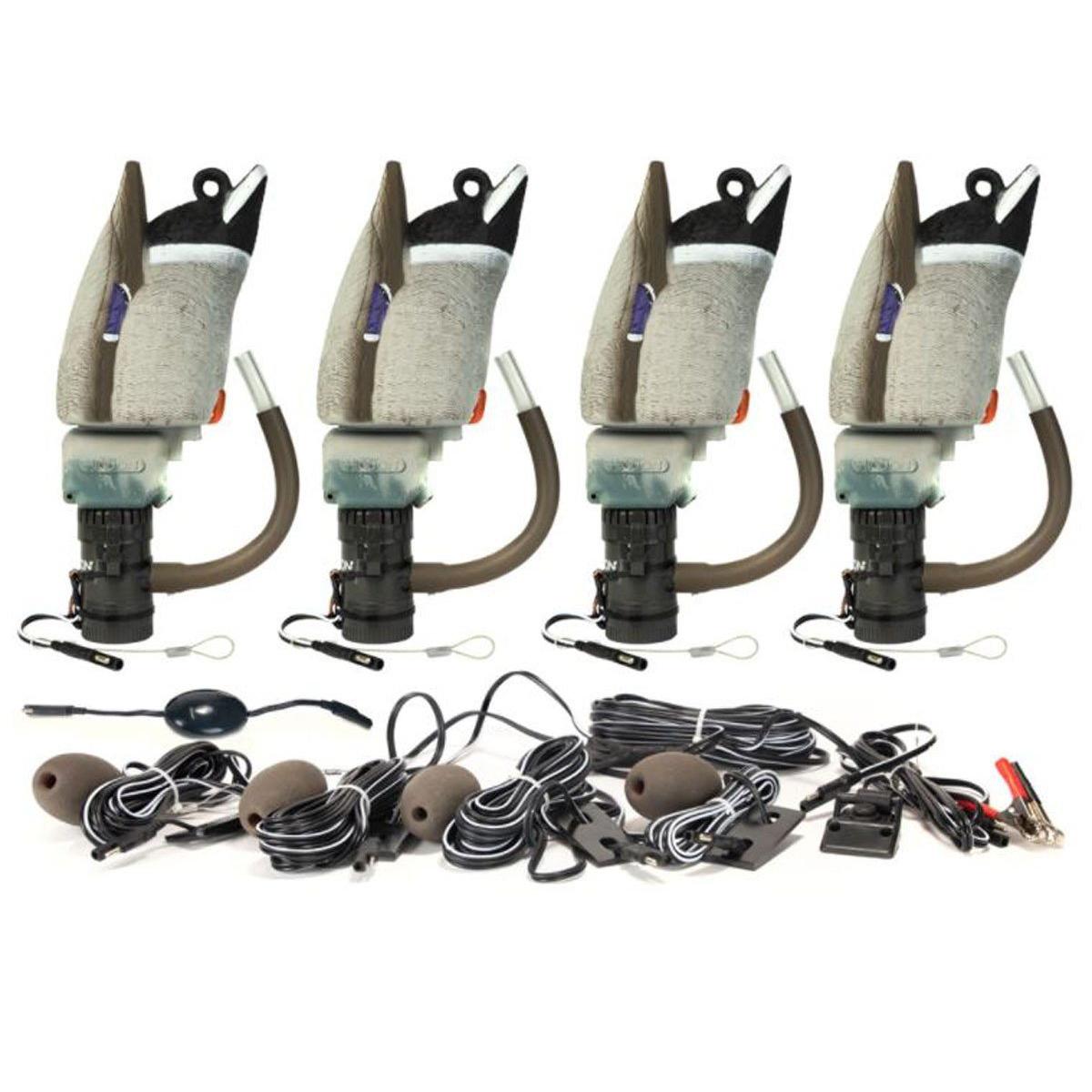 The New Hardwire System will revolutionize waterfowl hunting in a permanent set-up situation and is easy enough to put out in portable hunting scenarios. The Pulsator II Plug-N-Hunt base unit consists of a main-wire that runs a distance of 60 feet from your blind/ hunting location then splits off into four separate wires, each with different lengths (10', 20', 30', 30'). Attached to the very end of each wire are our new Pulsator 2 "duck butts" which surge a spray of water every time the bumper switch is pushed. This motion perfectly simulates feeding ducks. If you prefer not to use the manual bumper switch use the included HW Pulsator II Timer for continuous realistic motion.