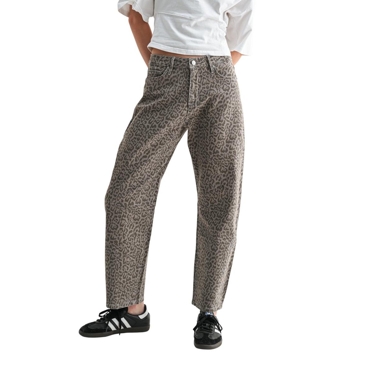 Make a statement in these high-rise barrel ankle jeans from Mica Denim, featuring a bold leopard print for a trendy edge. With a flattering waist and relaxed, curved leg that tapers at the ankle, they’re the perfect mix of comfort and standout style—easy to dress up or down.