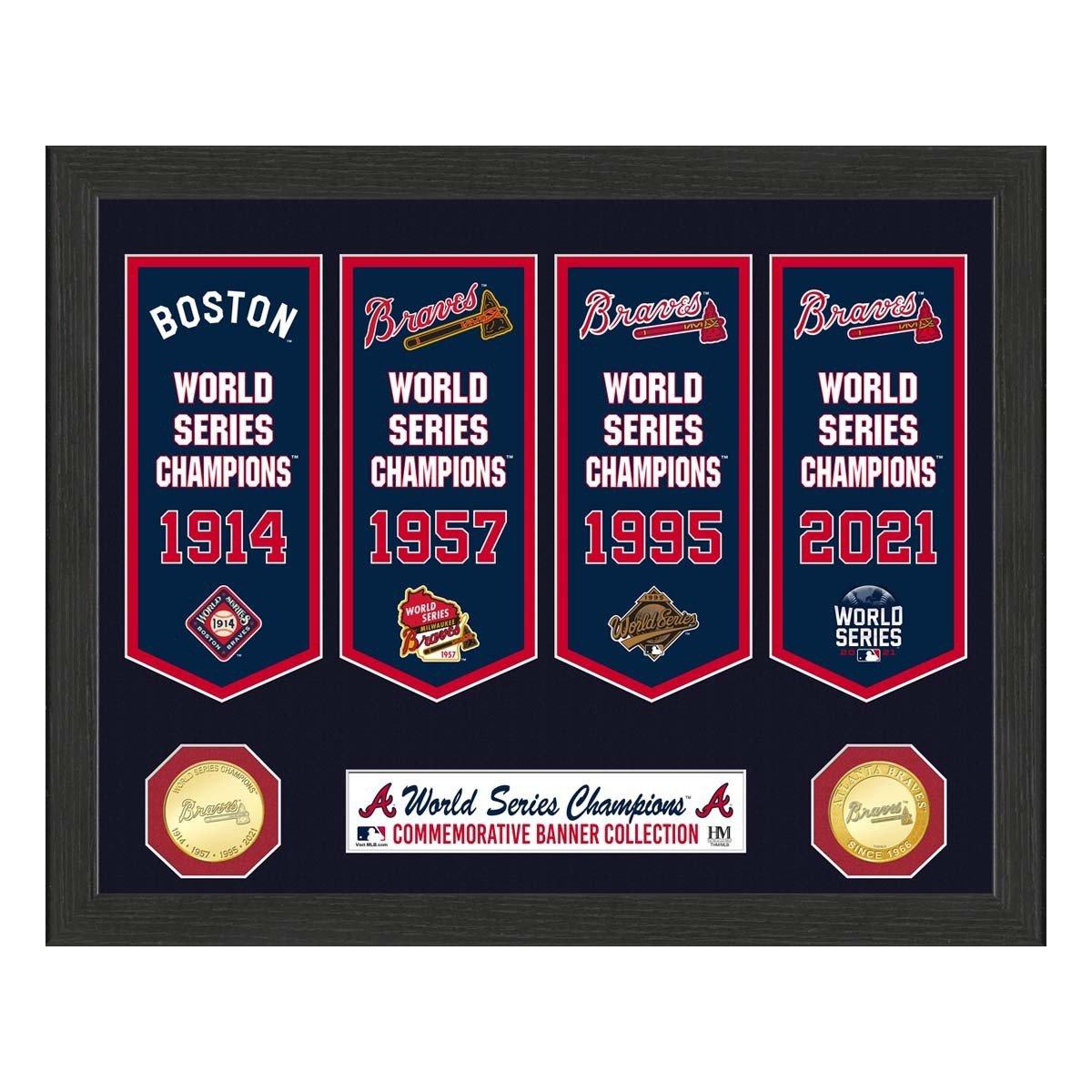Highland Mint Atlanta Braves 4-Time Champions Bronze Coin Banner Collection