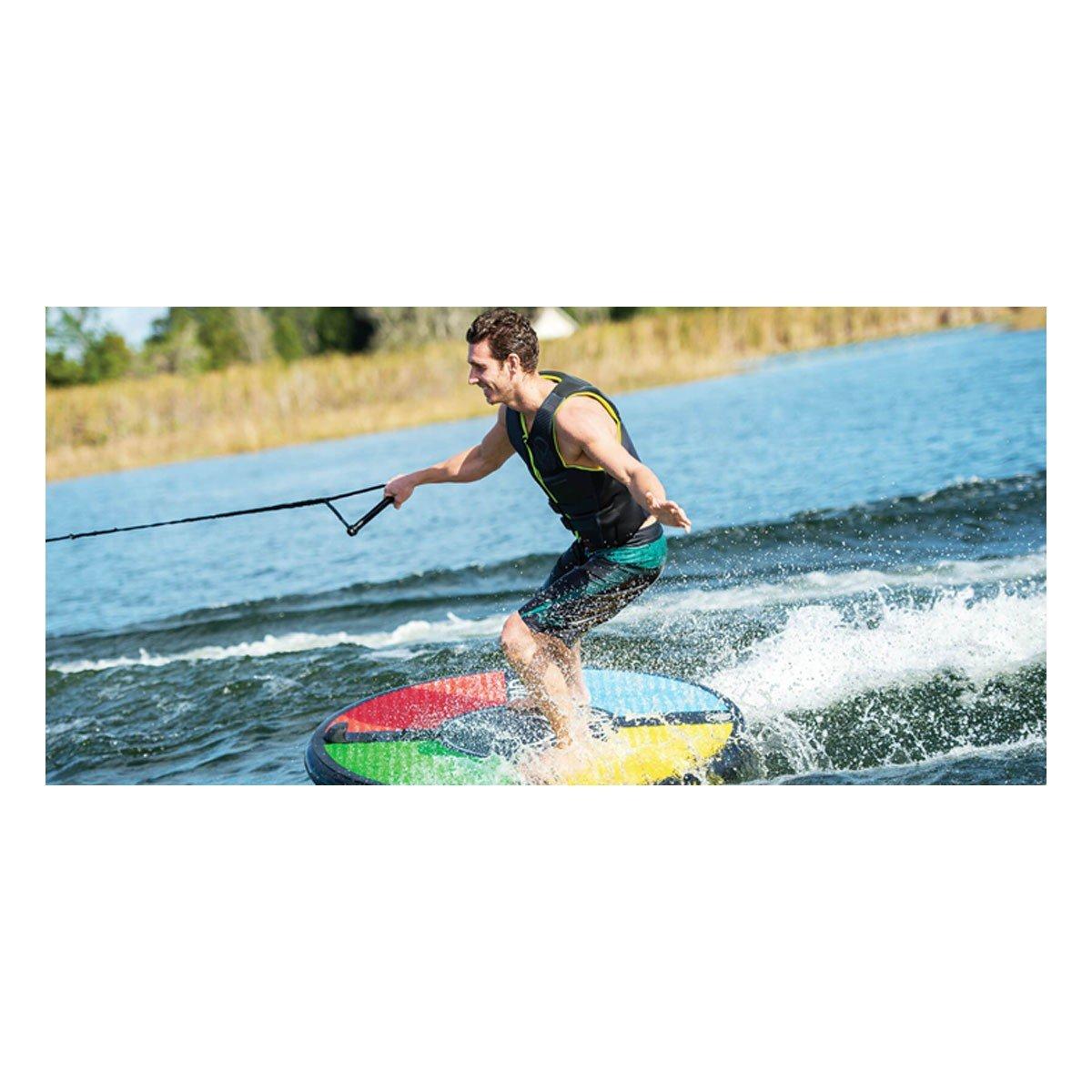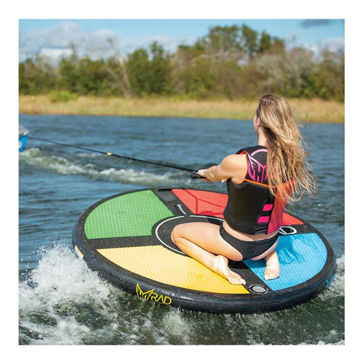 Before wakeboarding was invented, watersports pioneers of the 1960's experimented with objects to ride behind the boat. Some of the more successful riding devices were wooden discs. Grandpa would take a piece of plywood to his woodshop and cut it into a circular shape. The family would take turns 'discing' in between water ski sets. It was a great way to introduce people to riding behind the boat without the learning curve associated with waterskiing. 50 years later, we’ve combined the nostalgia of the past with the advanced materials and construction methods of today to give you the new RAD discs. Round Aquatic Devices (RADs) allow anyone, regardless of skill level, to participate in a day behind the boat. Everyone can get up on the 5’ RAD! You can put the handle in the soft EVA handle hook, sit, stand or kneel, and away you go. For a more advanced ride; go with the 4’ RAD or the even smaller 3’ RAD disc. The riding possibilities are endless, opening up a world of pure imagination on for your friends and family. Fun for all ages, the RADs are guaranteed to turn some heads on your lake this summer.
