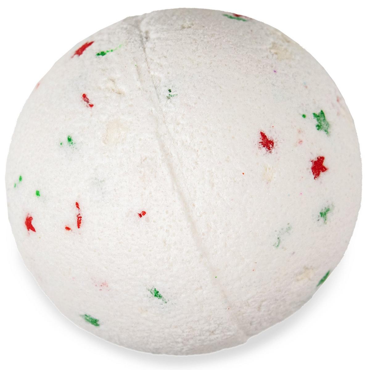 Embrace the holiday spirit with our enchanting star-studded bath bomb. The pristine white base dotted with cheerful red and green stars creates a magical snow globe effect in your bath. As it dissolves, it releases soothing scents and unveils a delightful holiday surprise toy to make your relaxation extra special.