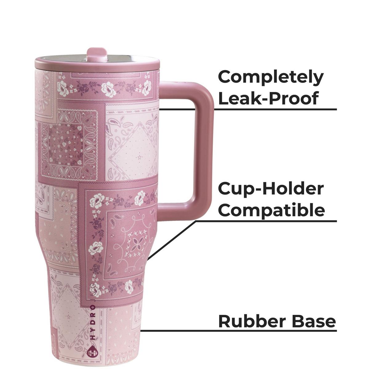 The HydroJug 40oz Traveler Tumbler is designed for convenience and all-day hydration on the go. Its triple-wall insulation ensures your drinks stay ice cold for hours, while the leakproof lid with a circular flip straw is both hygienic and effortless. The rubber base protects surfaces and prevents tipping or sliding, and the ergonomic handle makes it easy to carry wherever you go. With a generous 40oz capacity and still cupholder compatible, the HydroJug Traveler meets all your daily hydration needs. Enjoy easy sipping all day with the HydroJug 40oz Traveler Tumbler.