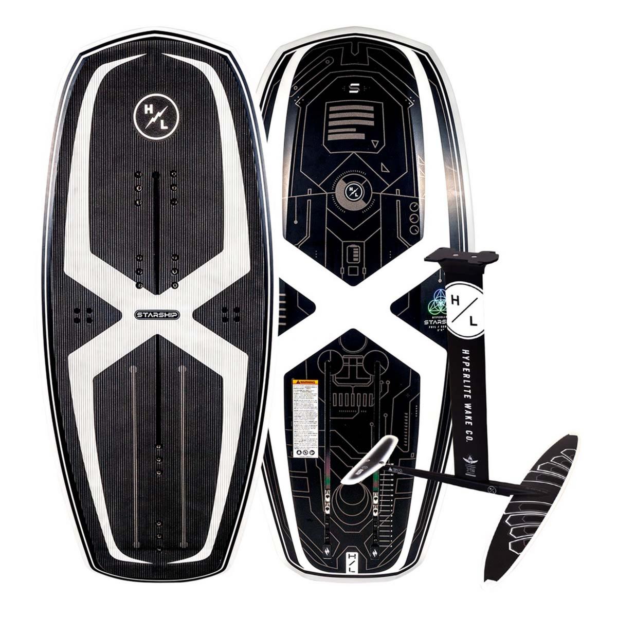 Tested by Team Hyperlite, the Starship Foil Board Hits on all Key Features & Ride Characteristics. Hyperlite’s new foil board, the Starship was designed for all wake foilers, whether it’s your first go or you’re advancing into pumping around the lake or high end maneuvers off the wake. Durashell Construction and our EPS Core keep the Starship light under foot for effortless gliding and flight. Concave top deck increases edge control and enjoy the comfy full deck EVA traction pad. The Starship comes equipped with foot straps for added control, multiple placements allows you to customize this ride. Most importantly the Starship can be paired with any Hyperlite foil assembly, including past kits and our new Raptor & Falcon kits.