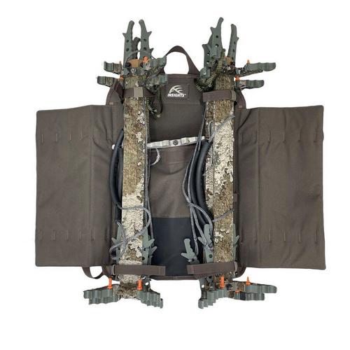 The Insights Saddle Stalker backpack is the ultimate companion for saddle hunters, offering a compact and organized carrying solution. Designed to accommodate saddle hunting platforms and climbing sticks, this lightweight pack ensures hassle-free transportation of essential gear. Its quick and quiet access design allows hunters to swiftly retrieve equipment while remaining undetected. The backpack's comfortable molded shoulder straps provide all-day carrying comfort. With the MOLLE system, hunters can easily attach additional accessories to customize their setup. The pack is made with Insights Hunting's proprietary color adaptive fabric, ensuring optimal concealment in various environments. The Insight Saddle Stalker backpack is a must-have for saddle hunters seeking efficiency and versatility.