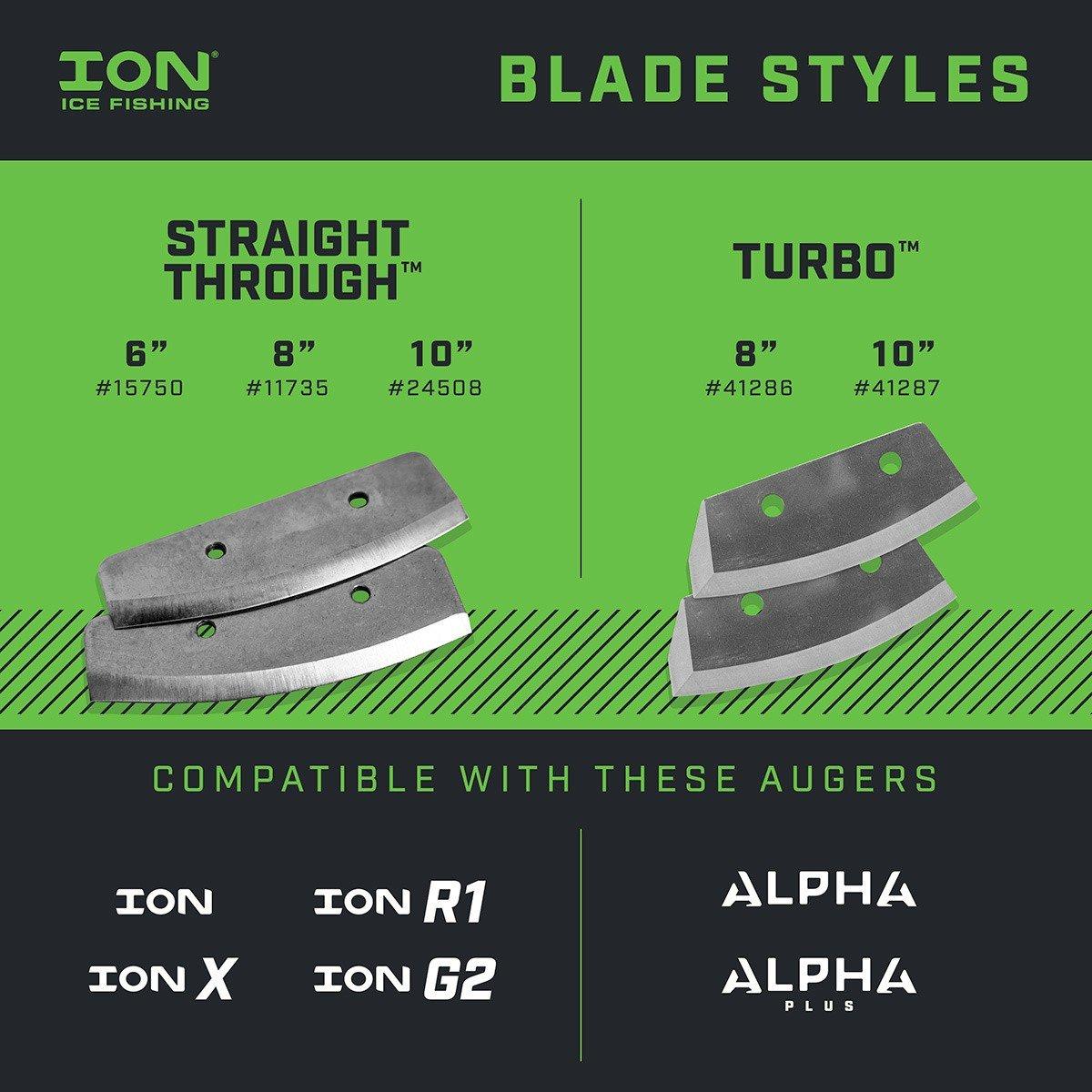 Straight-Through™ blade design virtually eliminates “catching” at breakthrough, saving you from jarring stops or yanks. These 10 inch steel blades are durable, easy to install, and consistently deliver a smooth cutting performance without jagged ice at the bottom of the hole that could fray your line.