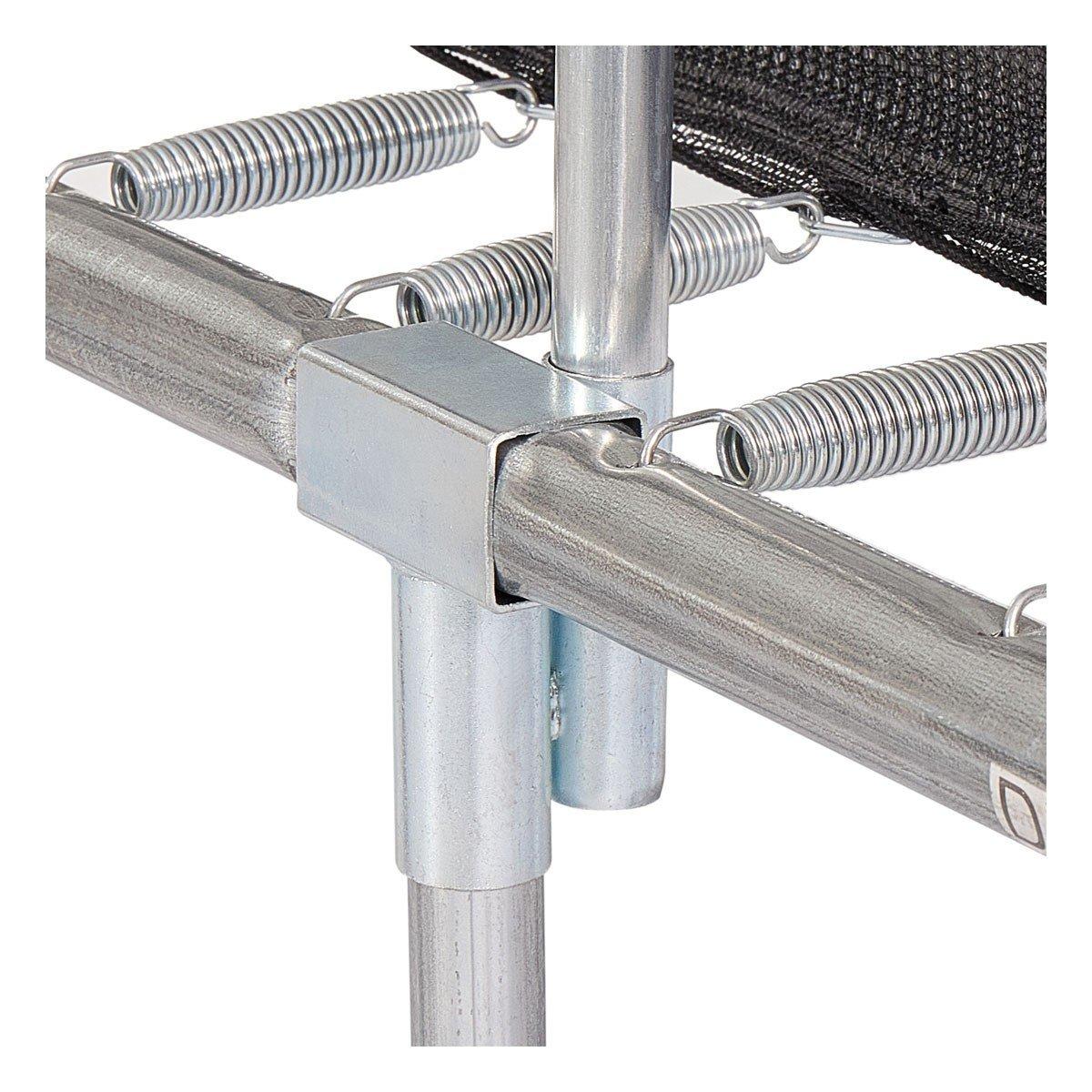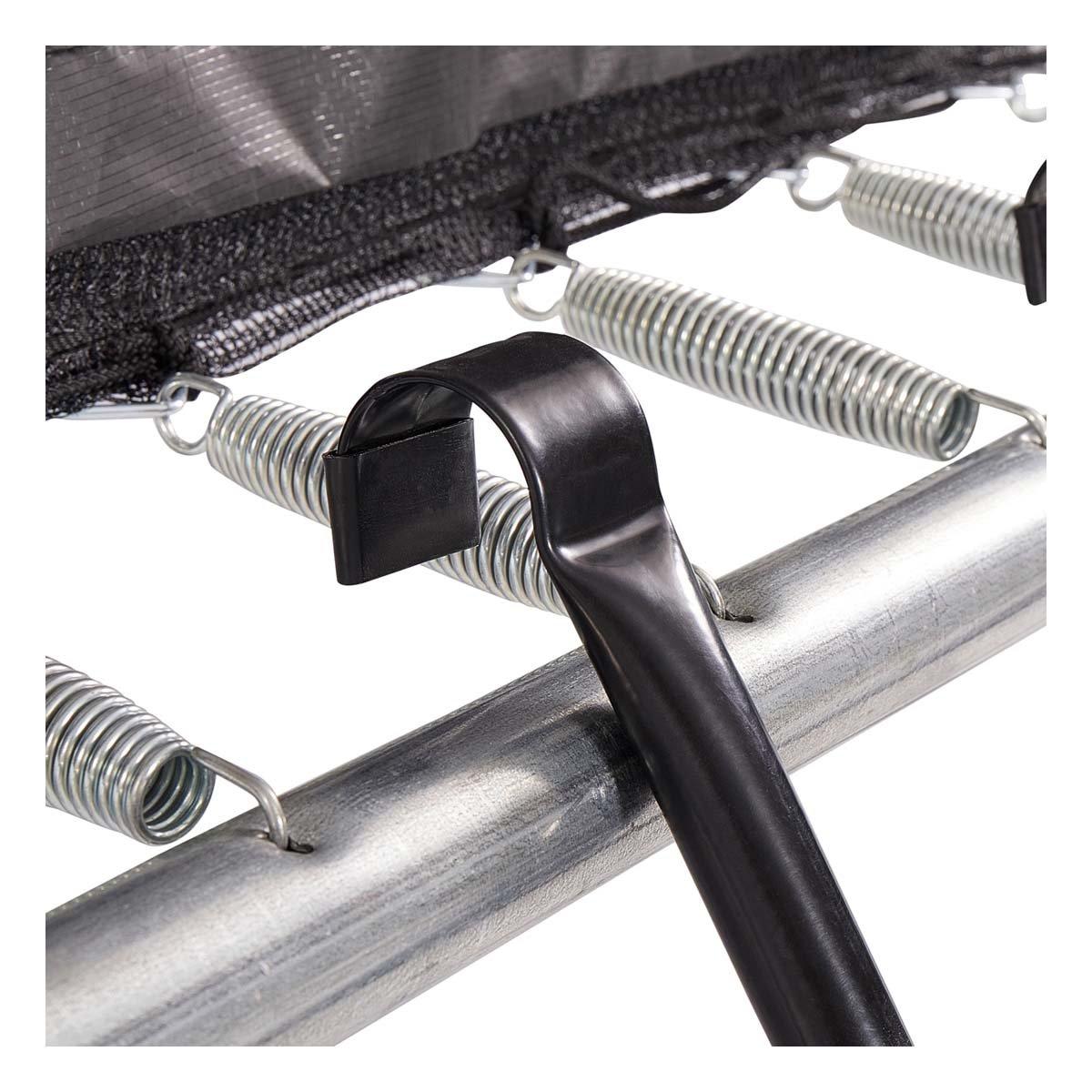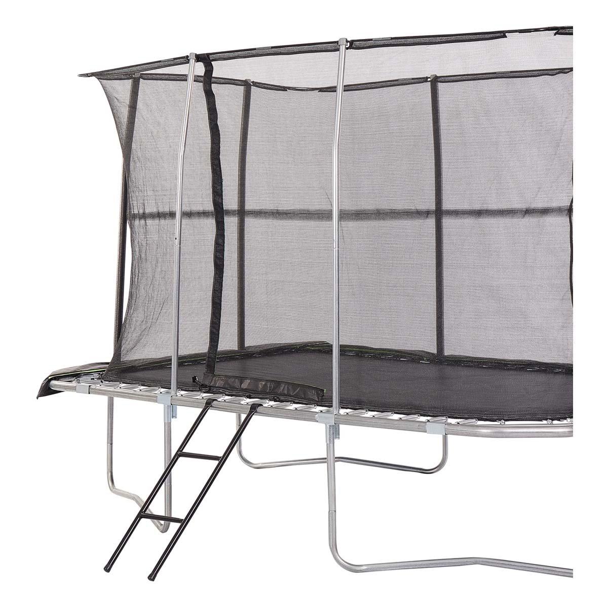 The Jumpking 7ft x 10ft rectangular trampoline offers an exciting and safe jumping experience for the whole family. Designed with a spacious rectangular jumping area, this trampoline is perfect for those seeking a fun and reliable way to stay active outdoors. The patented enclosure system with 8 sturdy enclosure poles ensures added safety, so you can bounce worry-free. The trampoline features 64 durable springs for a smooth, responsive bounce and a heavy-duty frame with 4 reinforced legs for long-lasting stability. The trampoline's maximum weight capacity of 200 lbs makes it ideal for children and light adults, while the included black powder-coated ladder provides easy and safe access. This trampoline is a fantastic addition to your backyard, offering hours of fun for jumpers of all ages.