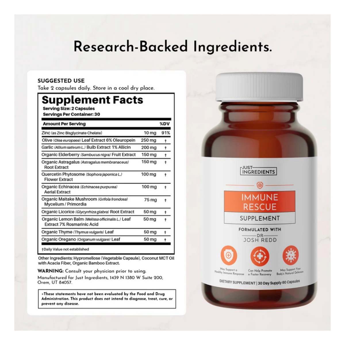 Make sure you’re prepared for when you or those around you are feeling run down. Immune Rescue combines a unique blend of herbs, botanicals, and minerals to help your body stay strong and resilient.* Zinc may support cellular function,* while olive leaf, garlic, elderberry, echinacea, maitake mushroom, and astragalus are all traditionally used in herbal wellness practices to help the body respond to external stressors and support vitality.* Elderberry and echinacea also contribute antioxidant activity, helping to protect cells from free radical damage.*