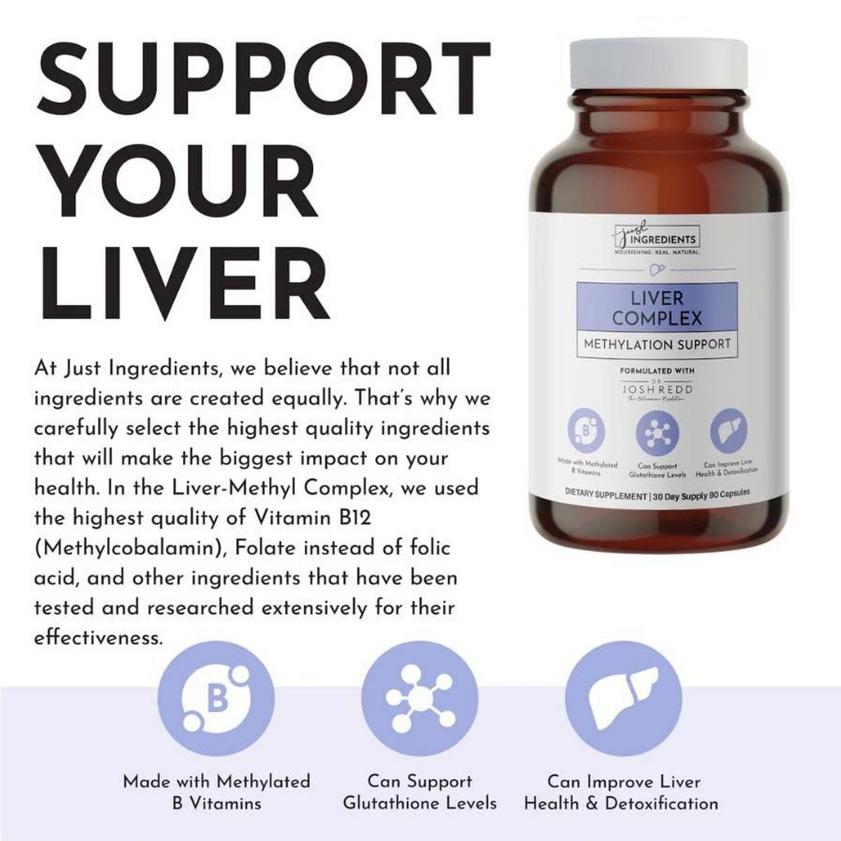 Formulated with Methyl B Vitamins, N-Acetyl-L-Cysteine (NAC) & L-Methionine, Organic Milk Thistle & Organic Dandelion Root, and Betaine Anhydrous, Liver-Methyl Complex can help to target pathways crucial for detoxification, methylation, hormone balance, and protection against inflammation.