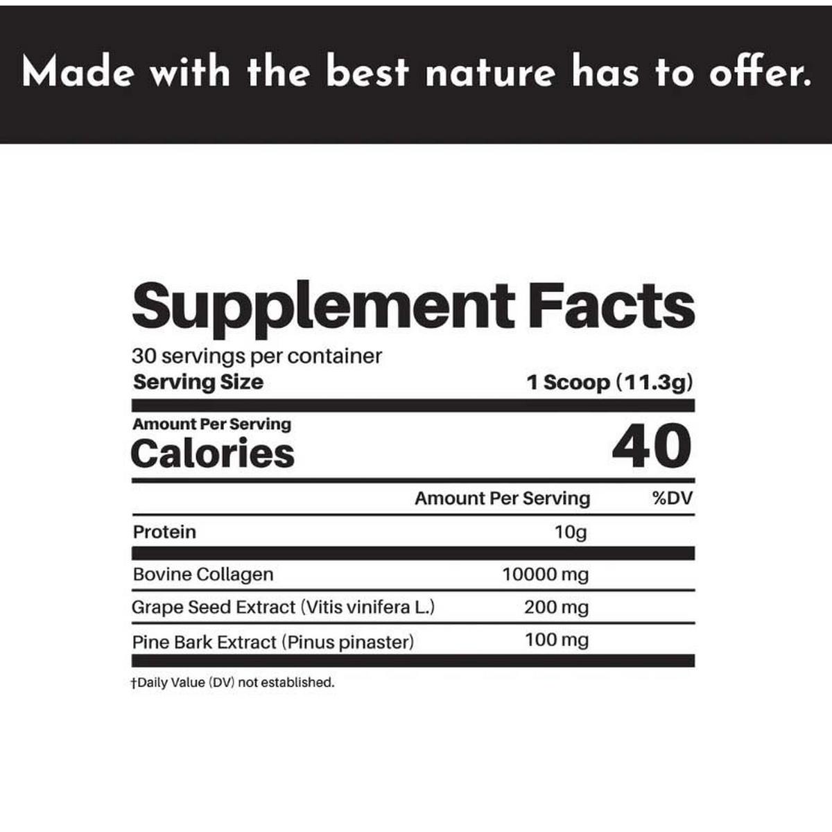 Bovine Collagen is a protein that provides structure to most of the body, including bones, skin, tendons, and ligaments. It may help delay some signs of aging, like wrinkles, joint issues, and weakness. For best results, consistent use is key.