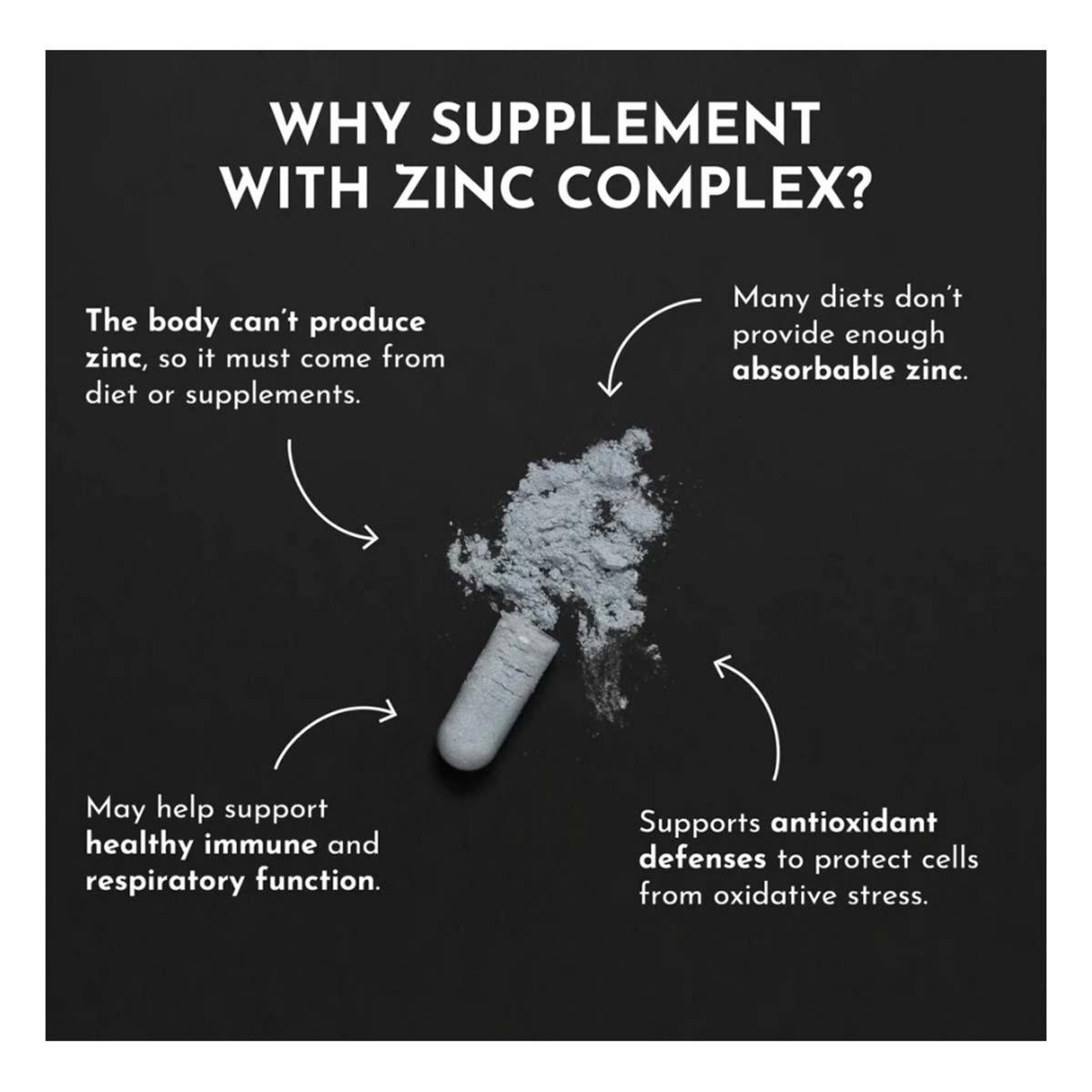 Zinc is involved in more than 300 enzyme functions in the body, supporting everything from your immune system to energy levels. Our Zinc Complex uses highly absorbable forms—zinc bisglycinate and zinc picolinate—for better uptake, plus quercetin and L-Histidine to help zinc reach your cells, copper to maintain mineral balance, and resveratrol for antioxidant support. It’s a thoughtfully formulated blend crafted for better absorption and to support your body’s resilience.*