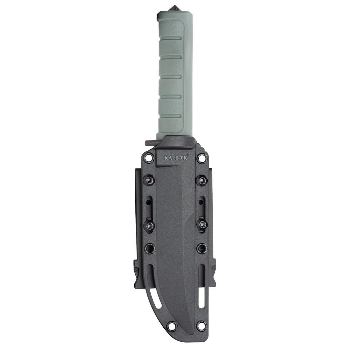 {"reviews":[],"offset":0,"limit":10,"total":0}"Full Description:\nLeave them in the Dust - Dust I that is. The Dust I is made from D2 steel with an ergonomic glass filled nylon handle and unique spike buttcap. This fixed blade comes with a black hard plastic sheath that is MOLLE-compatible.\n\nSpecifications:\n\u003cul>\n\u003cli>Blade Guard: Yes\u003c/li>\n\u003cli>Blade Length: 6.125 inches\u003c/li>\n\u003cli>Blade Steel: D2\u003c/li>\n\u003cli>Blade Thickness: 0.188 inches\u003c/li>\n\u003cli>Blade Type: Fixed Blade\u003c/li>\n\u003cli>Blade Width: 1.1 inches\u003c/li>\n\u003cli>Color: Green Handle/Black Blade\u003c/li>\n\u003cli>Edge Angle: 20\u003c/li>\n\u003cli>Grind: Flat\u003c/li>\n\u003cli>Handle Material: Glass Filled Nylon\u003c/li>\n\u003cli>Knife Manufactured in: Taiwan\u003c/li>\n\u003cli>Overall Length: 11.0 inches\u003c/li>\n\u003cli>Rockwell Hardness: 59-61\u003c/li>\n\u003cli>Shape: Clip Point\u003c/li>\n\u003cli>Sheath Manufactured In: Taiwan\u003c/li>\n\u003cli>Tang Stamp: KA-BAR\u003c/li>\n\u003cli>Weight: 0.7 lb\u003c/li>\n\u003c/ul>\n"