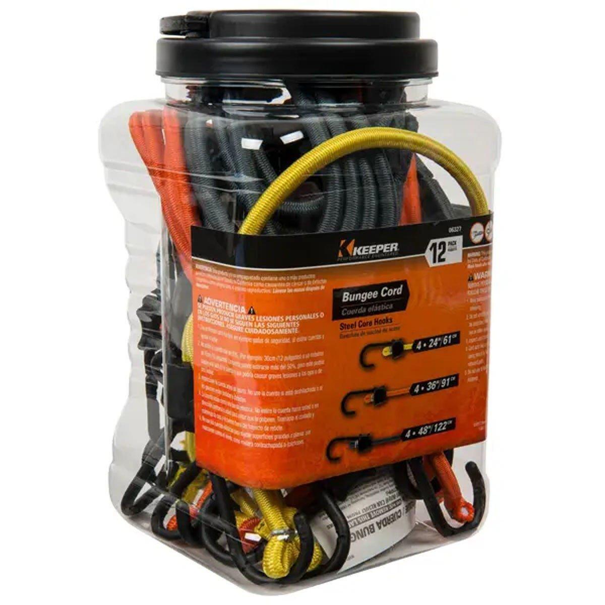 Keeper Bungee Cords are made from the highest quality materials for long-lasting dependability no matter what the application. Bungee cords are designed to withstand UV rays and weather damage with durable outer jackets in bright, visible colors. Inside, premium rubber ensures top quality performance and outstanding toughness. SST hooks have a steel core inside that makes it stronger than conventional bungee hooks, and a glass-filled nylon outer sheath adds grip and protects belongings.
