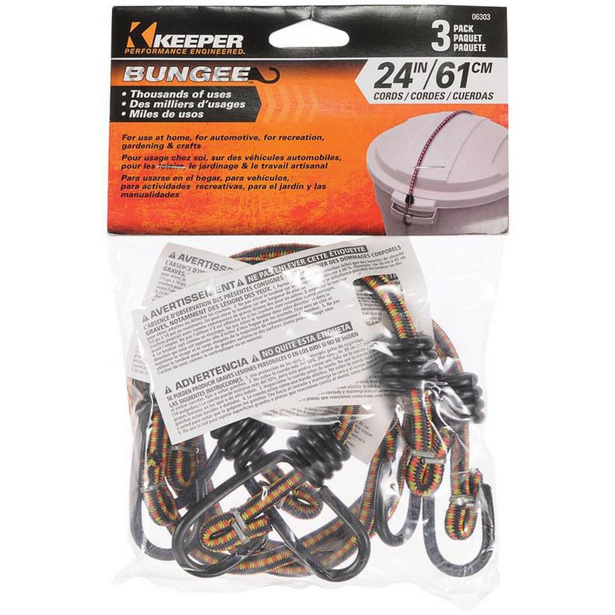 Keeper 24 in Multi-Color Bungee Cord with Coated Hooks - 3 Pack