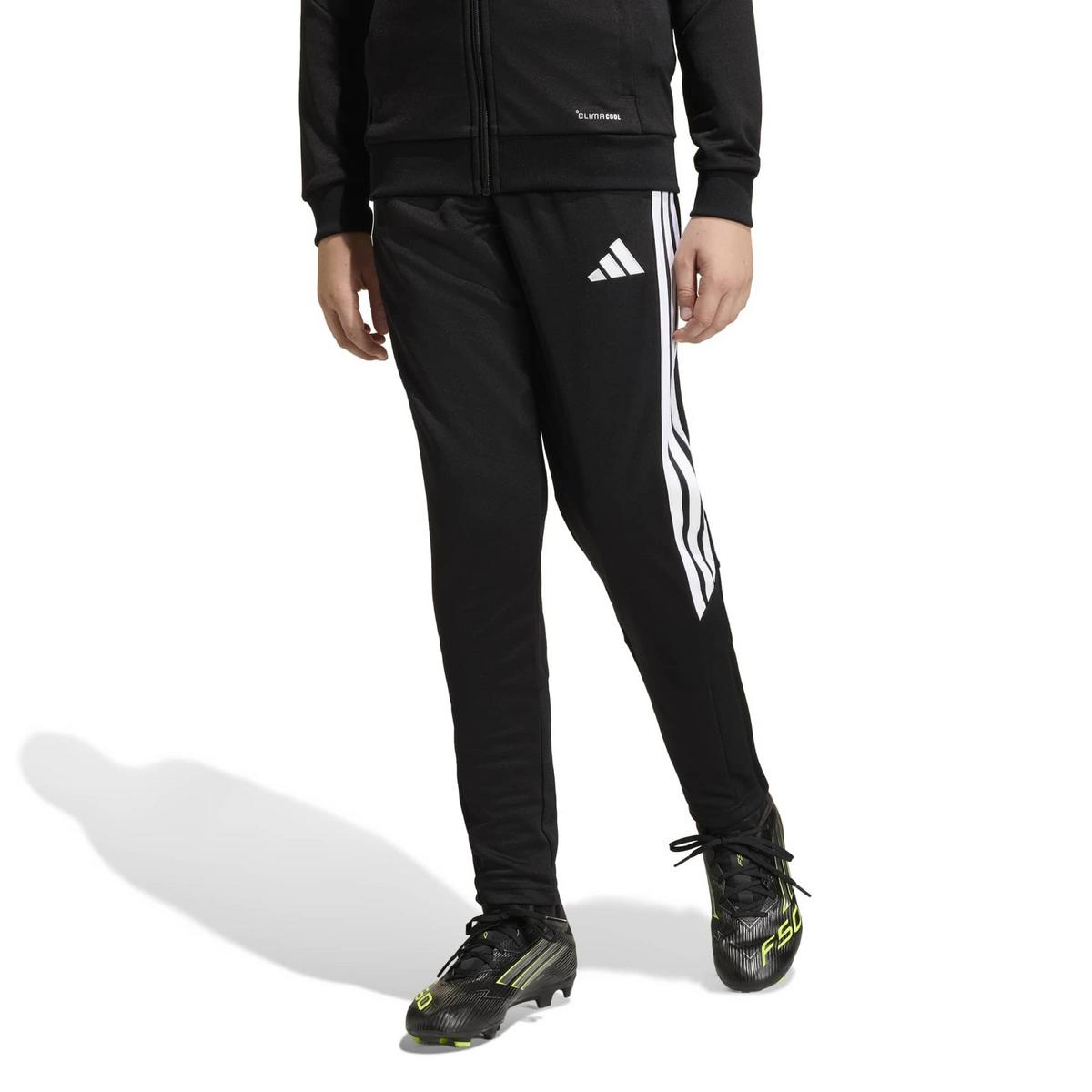 Step onto the pitch with confidence in the Tiro26 League Kids Training Pants. Inspired by elite design, these trousers offer a fast and modern look that fits seamlessly into your child's active lifestyle. Whether it's playtime, school activities, or sports practice, these trousers are designed to keep up with every movement. Crafted with Climacool technology, they wick and disperse sweat, helping your child feel cool, dry, and focused during intense activities. The fabric mix follows the new Climacool standard, providing comfort and performance. With leg zips for easy on and off, these trousers are great for quick transitions during training sessions. The classic embroidered adidas logo and laid-on 3-Stripes add a touch of football heritage, whilst zipped pockets offer secure storage for essentials. Designed with a mid-rise waist and standard fit, these trousers provide a comfortable and secure feel, allowing your child to move freely and confidently.