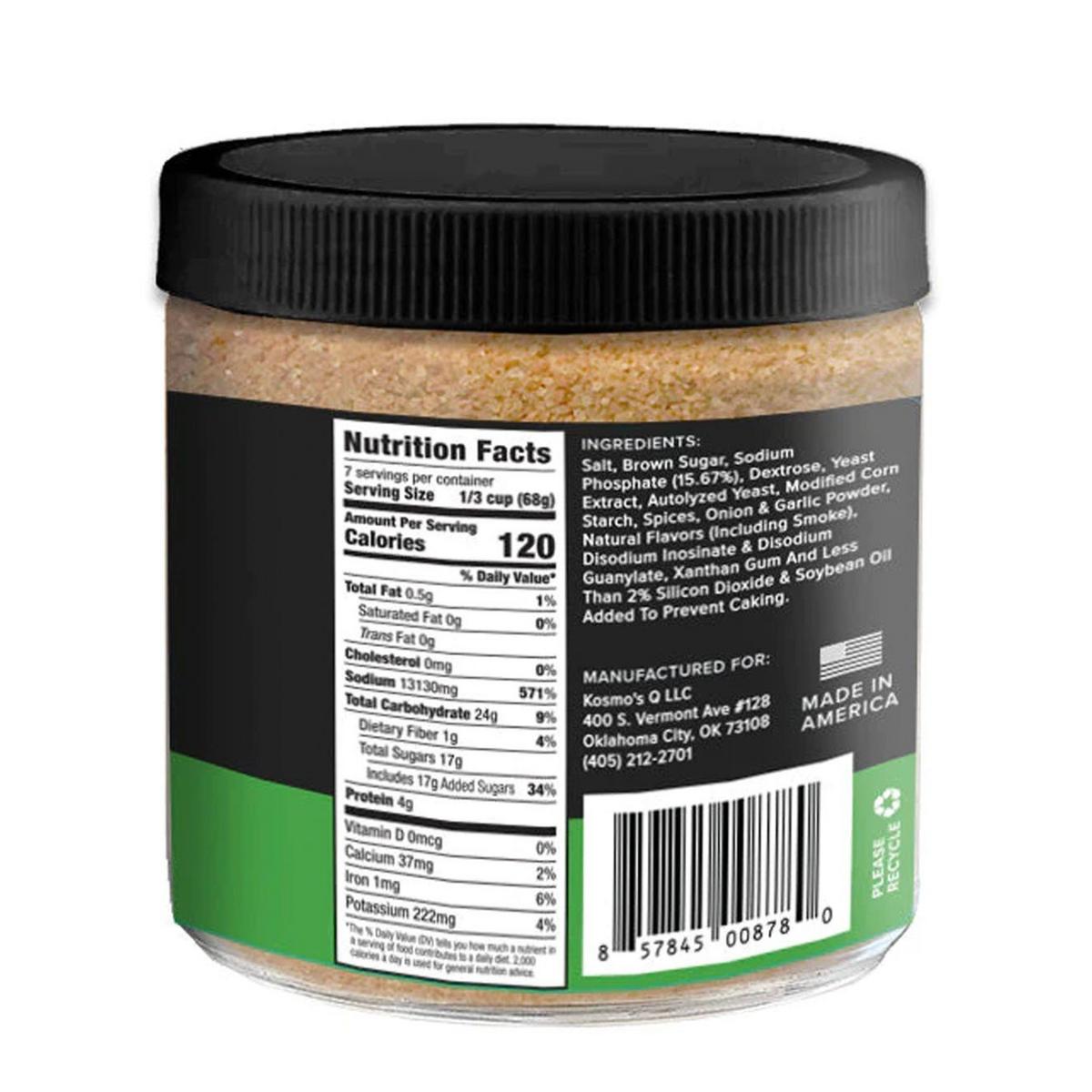 Salt, Brown Sugar, Sodium Phosphate (15.67%), Dextrose, Yeast Extract, Autolyzed Yeast, Modified Corn Starch, Spices, Onion & Garlic Powder, Natural Flavors (Including Smoke), Disodium Inosinate & Disodium Guanylate, Xanthan Gum And Less Than 2% Silicon Dioxide & Soybean Oil Added To Prevent Caking.