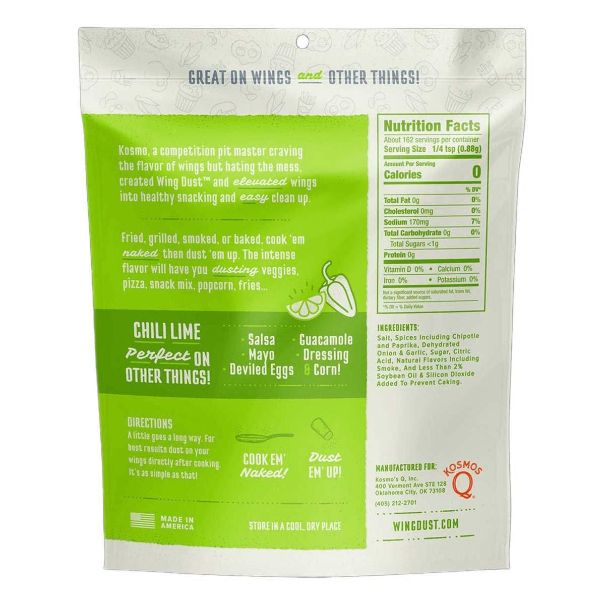Introducing Kosmo's Q original Chili Lime Wing Dust, the perfect fiery addition to any homemade baked wings recipe! All you have to do is cook your wings, toss them in your favorite sauce, and then add the wing dust for an explosion of flavor that will change the way you see wings forever! Don't eat chicken wings very often? This unique blend of Kosmo spice, chili and lime will have your taste buds dancing a wonder tango in your mouth.