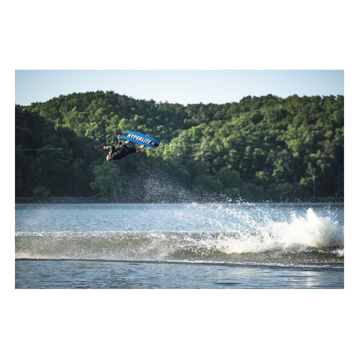 Hyperlite’s new KRUZR-GLS is a collaboration between R&D head Aaron Stumpf and Rusty Malinoski. Aaron shaped Rusty’s 1st first ever pro model, the Marek and every board since. This board is a departure from the aggressive style ride Rusty is known for, this new shape is a nimble cruiser. The KRUZR-GLS has more surface area than any other board but has been shaped to maintain a lively feel with a minimum thickness profile. More comfy than previous shapes, Rusty feels all ride styles and ability levels will enjoy this new shape which will surely suit riders in the 200+lbs range. Aaron brought new features like the Boneline Grab Rail and Cupped Tail Rail design allowing the wider board to sit deep in the water for a solid edge hold on approach. The Molded Landing Feature is included while the overall base design is simpler, delivering that cruisy flowy feel between tricks and carving the wake. Rusty still enjoys smashing dubs and going big, the KRUZR-GLS offers more pop and landing stability for the biggest of airs.