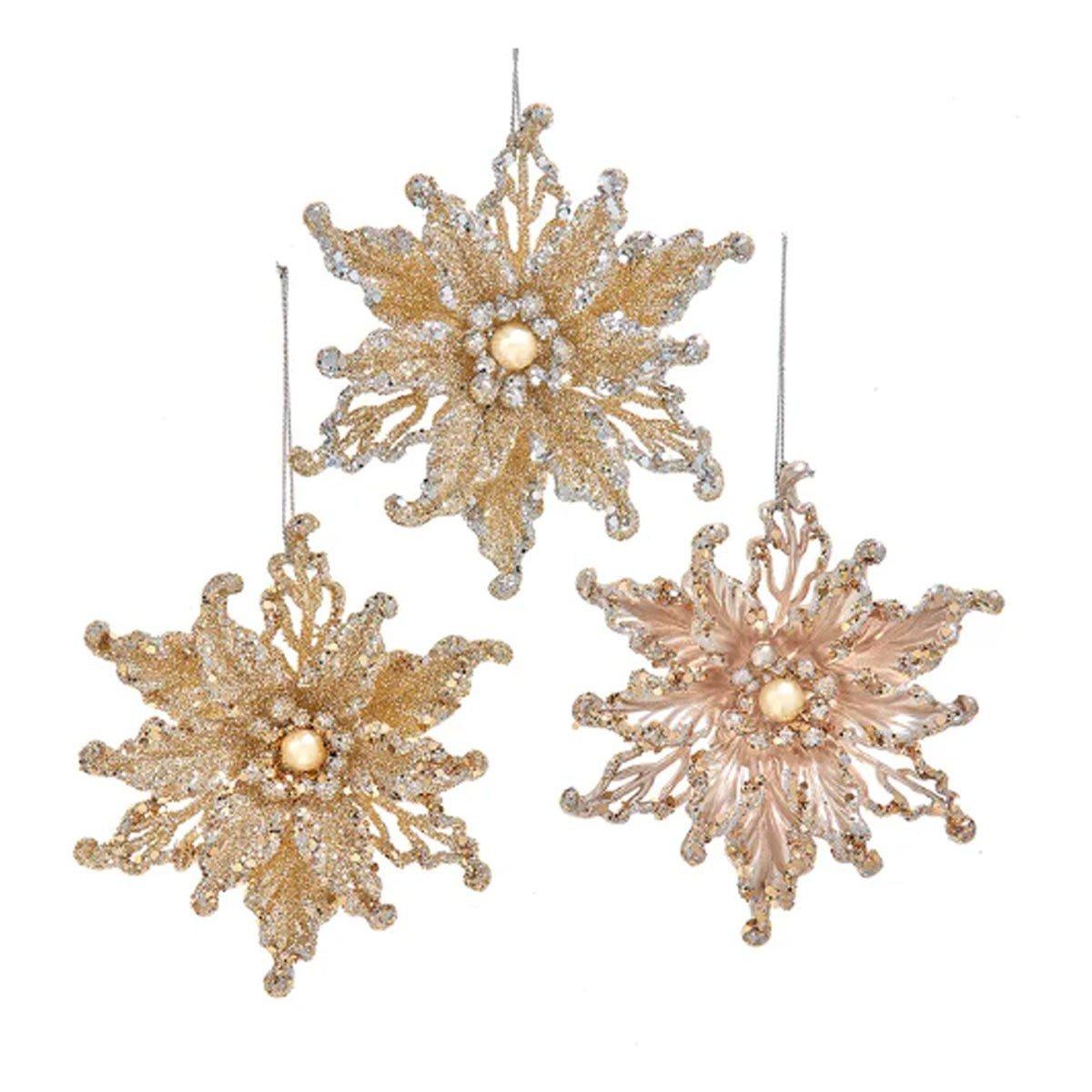 Kurt Adler's Platinum Poinsettia Ornaments are a dazzling and festive addition to your holiday decor that captures the timeless beauty of poinsettias in opulent platinum tones and pearl centers. Included in this assortment are three ornaments, each featuring meticulously crafted poinsettia designs, perfect for infusing your holiday decor with a sense of tradition and holiday charm. These exquisite ornaments showcase intricate poinsettia details with a sophisticated appearance, from the lifelike petal motifs that evoke the spirit of the season to the opulent glittered platinum color palette that adds a touch of holiday luxury. Crafted with precision and attention to detail, these ornaments are made from high-quality materials that capture the essence of poinsettias and the festive spirit of the holiday season. Hang the Platinum Poinsettia Ornaments on your tree, in windows, or anywhere you want to infuse your holiday decor with a sense of style and timeless beauty. Celebrate the magic of the holidays and the joy of festive celebrations with our Platinum Poinsettia Ornaments, and let them remind you of the beauty of the season and the happiness that this special time of year brings.