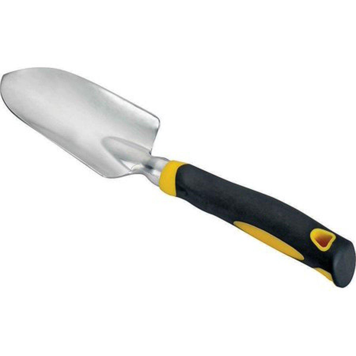 Garden trowel. Aluminum alloy steel blade. Soft grip. Convenient hanging hole for storage.