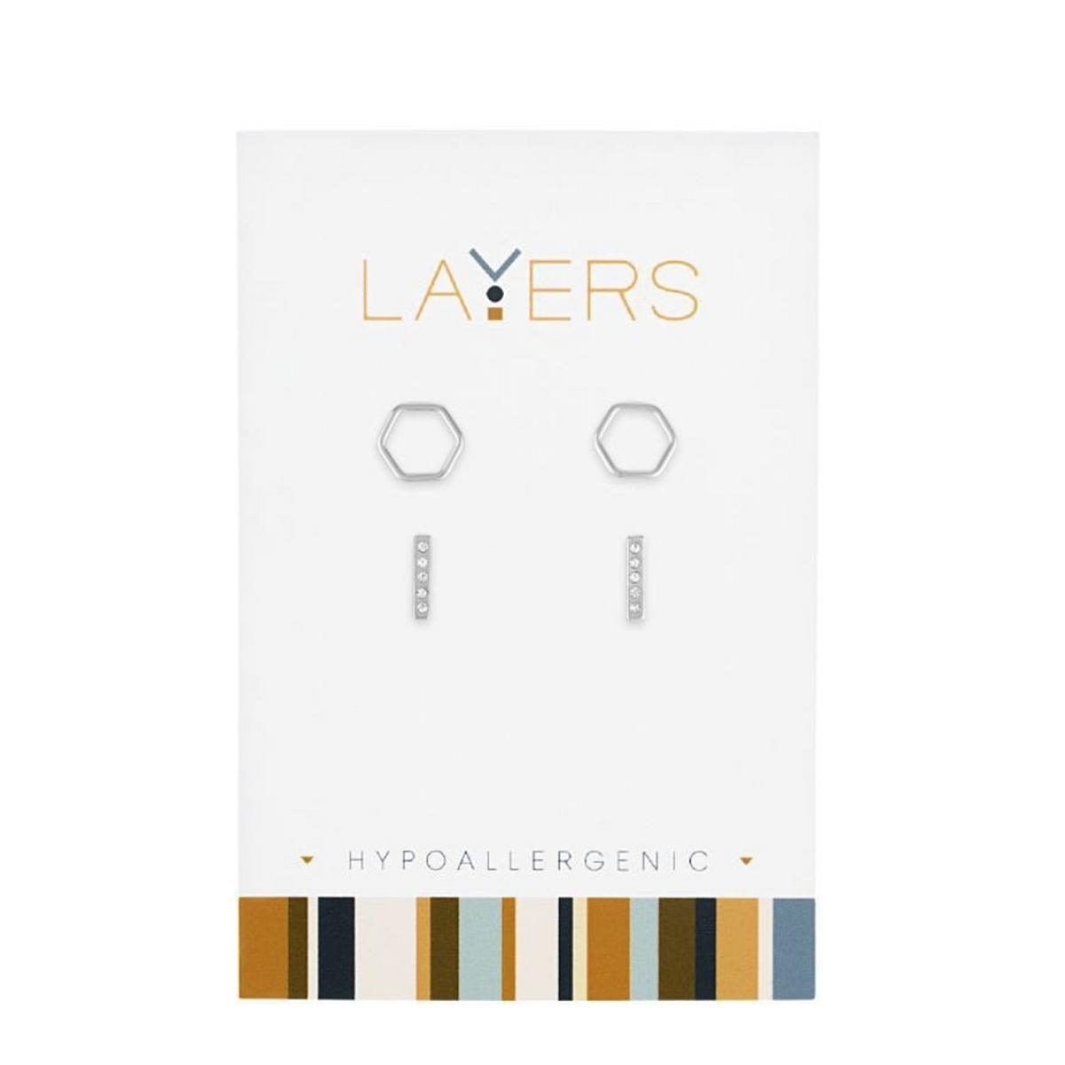 Layers Hex Bar Stud Earrings
