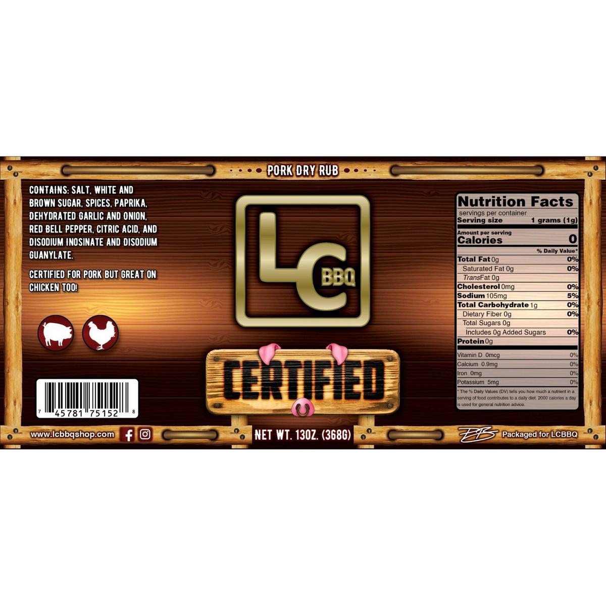 This expertly formulated rub creates that signature mahogany color while enhancing your proteins with savory, well-balanced flavors. Whether you're smoking ribs, grilling chops, or roasting veggies, Certified brings out the best in every dish.