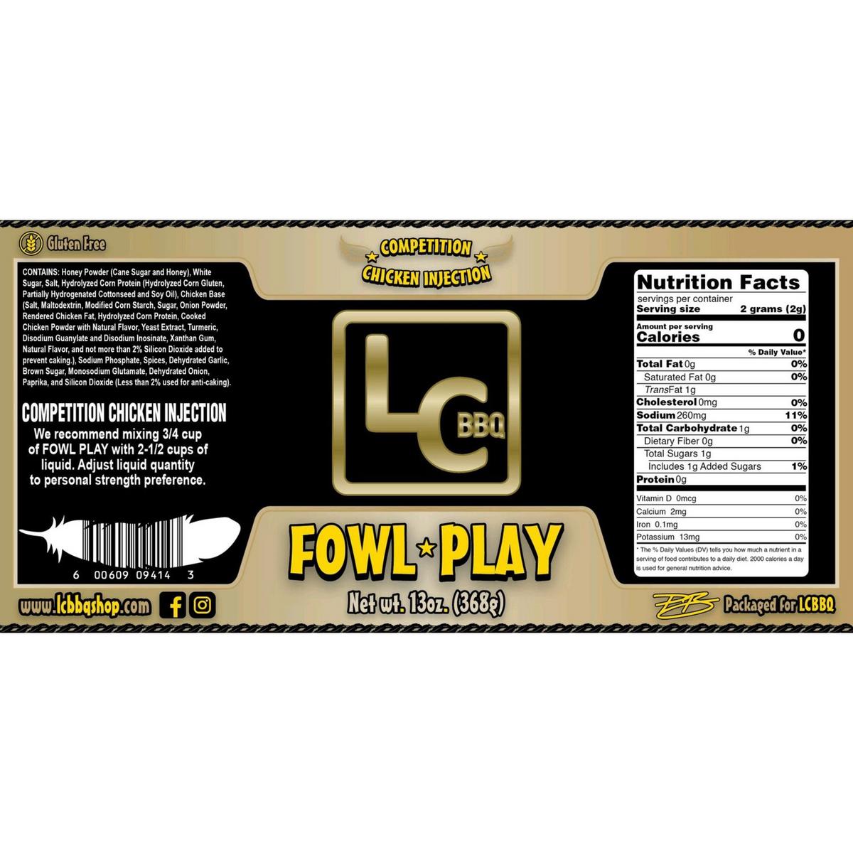Take your poultry to championship levels with Fowl Play, a competition-grade injection crafted to deliver moist, flavorful results every time. This expertly blended mix of spices and phosphates ensures juicy, tender chicken and other poultry that stands out on the competition circuit and at home.