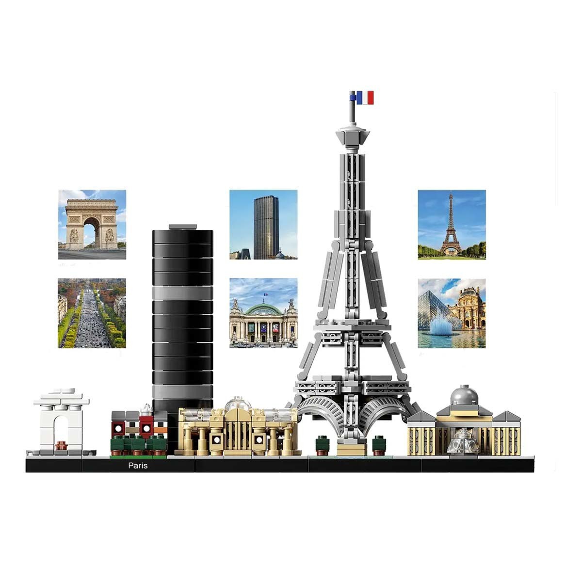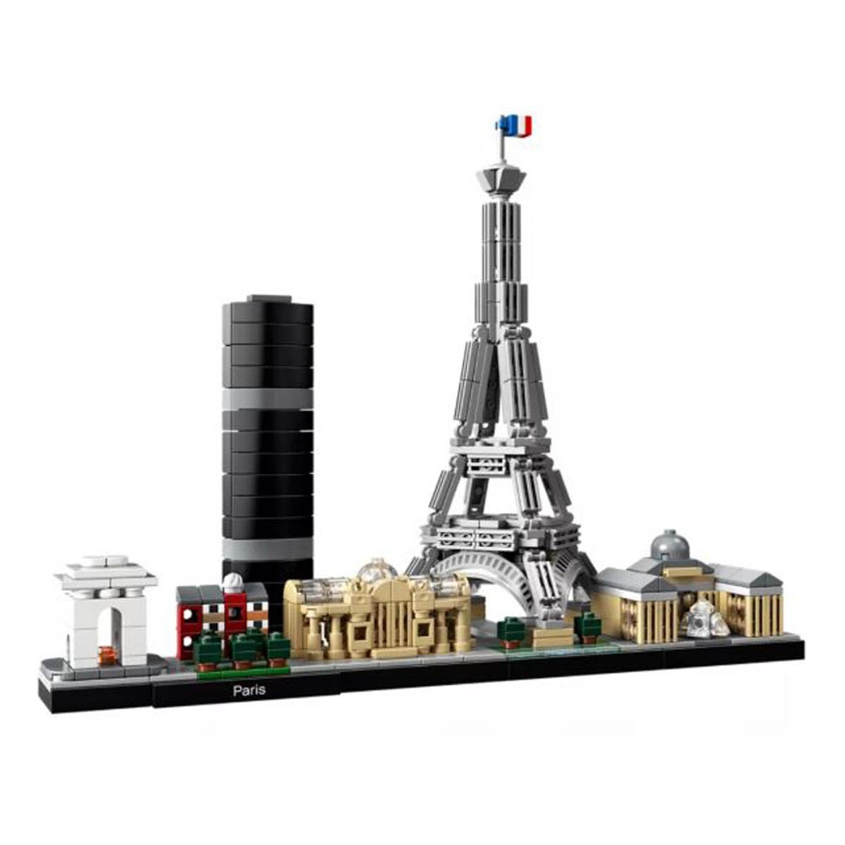 Bring together iconic Paris landmarks with this magnificent Paris skyline model. The 21044 LEGO® Architecture Skyline Collection set features the Arc de Triomphe, Champs-Elysées, Tour Montparnasse, Grand Palais, Eiffel Tower and the Louvre, and is finished with grass and tree areas and a decorative Paris nameplate. This set has been designed to deliver a rewarding and relaxing building experience to all with an interest in architecture, travel, history and design, and makes a truly “magnifique” centerpiece for the home or office. Each skyline model is scaled to give an accurate representation of the comparative size of the featured structures, with realistic color depiction.