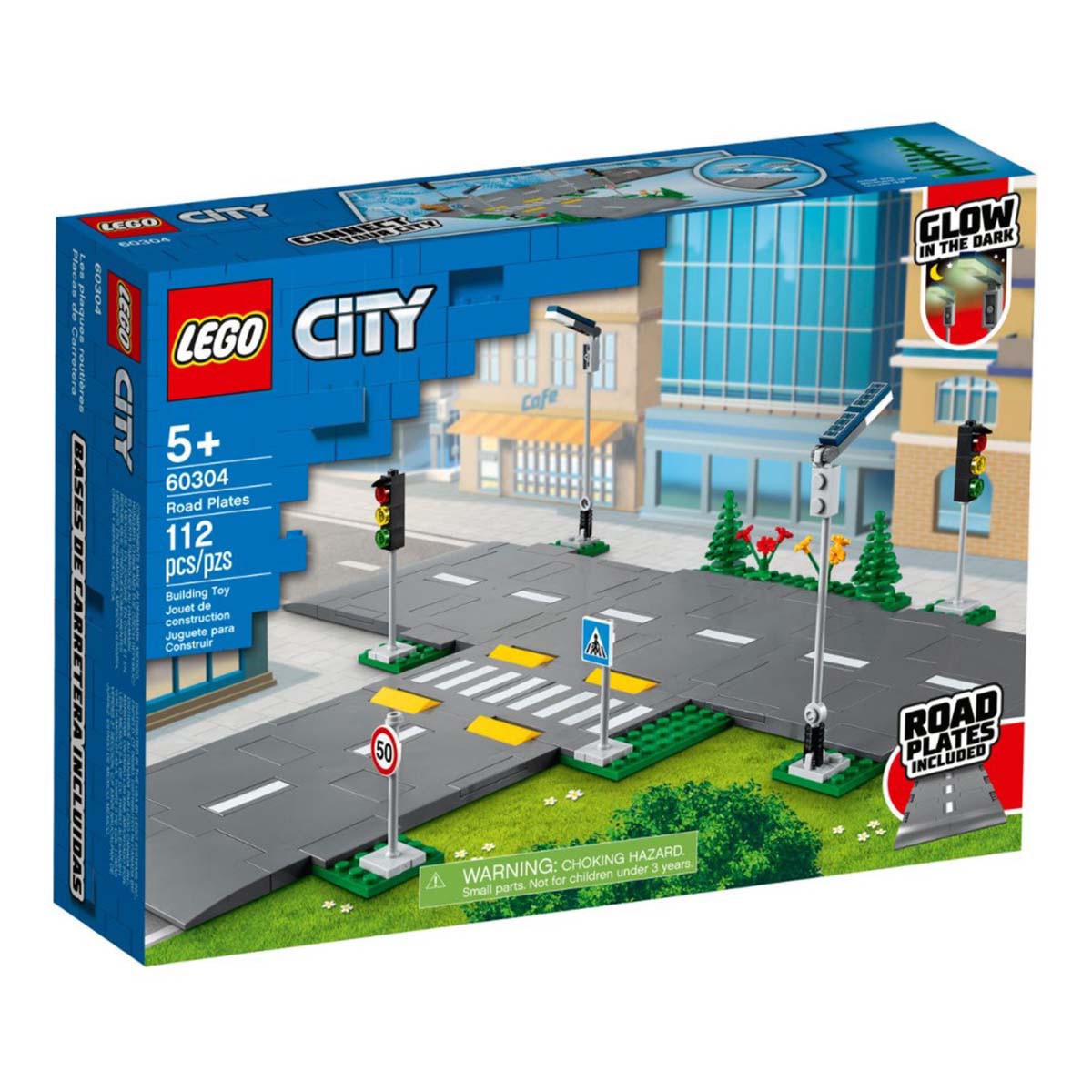 This LEGO® City Road Plates (60304) building set adds a realistic backdrop to kids’ imaginative play, with glow-in-the-dark toy streetlights, traffic lights, road signs, traffic lane markings, speed bumps, a crosswalk, trees and greenery. Kids can place the Road Plates their way, build a city around them and connect to other LEGO Road Plate building sets to expand their city creations!A great gift for LEGO City fans aged 5 and upThe LEGO City Road Plates toy playset comes with an easy-to-followbuilding guide and Instructions PLUS – part of the free LEGO Building Instructions app for smartphones and tablets. This interactive construction guide with zoom and rotate viewing tools quickly helps young LEGO builders become master builders.Inspirational toys for boys and girlsLEGO City building sets stimulate open-ended, creative role play with feature-rich buildings, realistic toy vehicles and fun characters that deliver an enjoyable, fun-filled play experience based on real-life events.