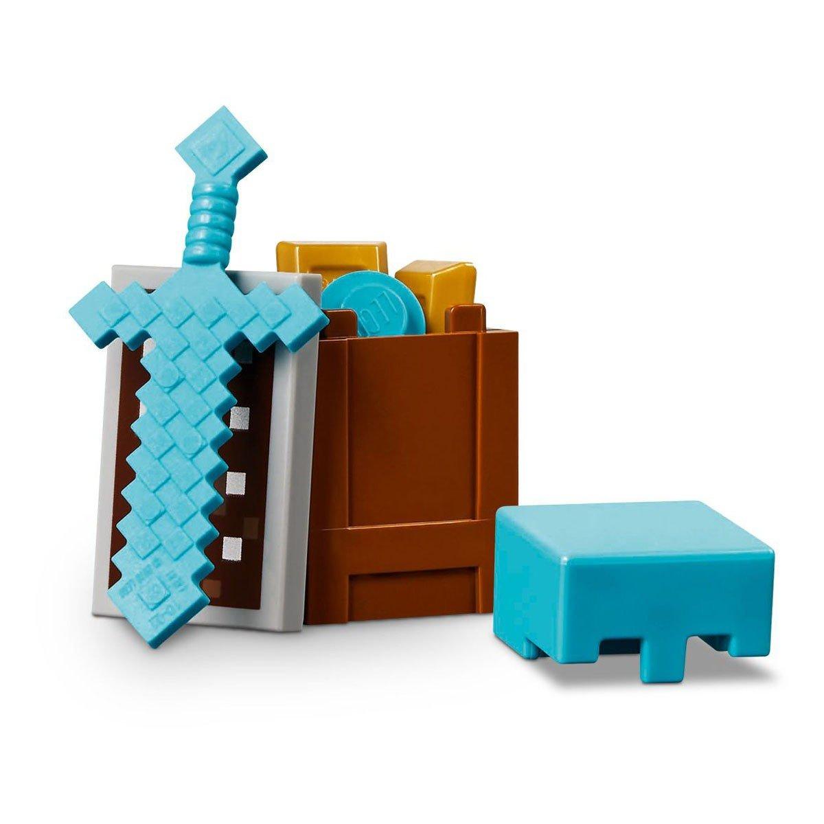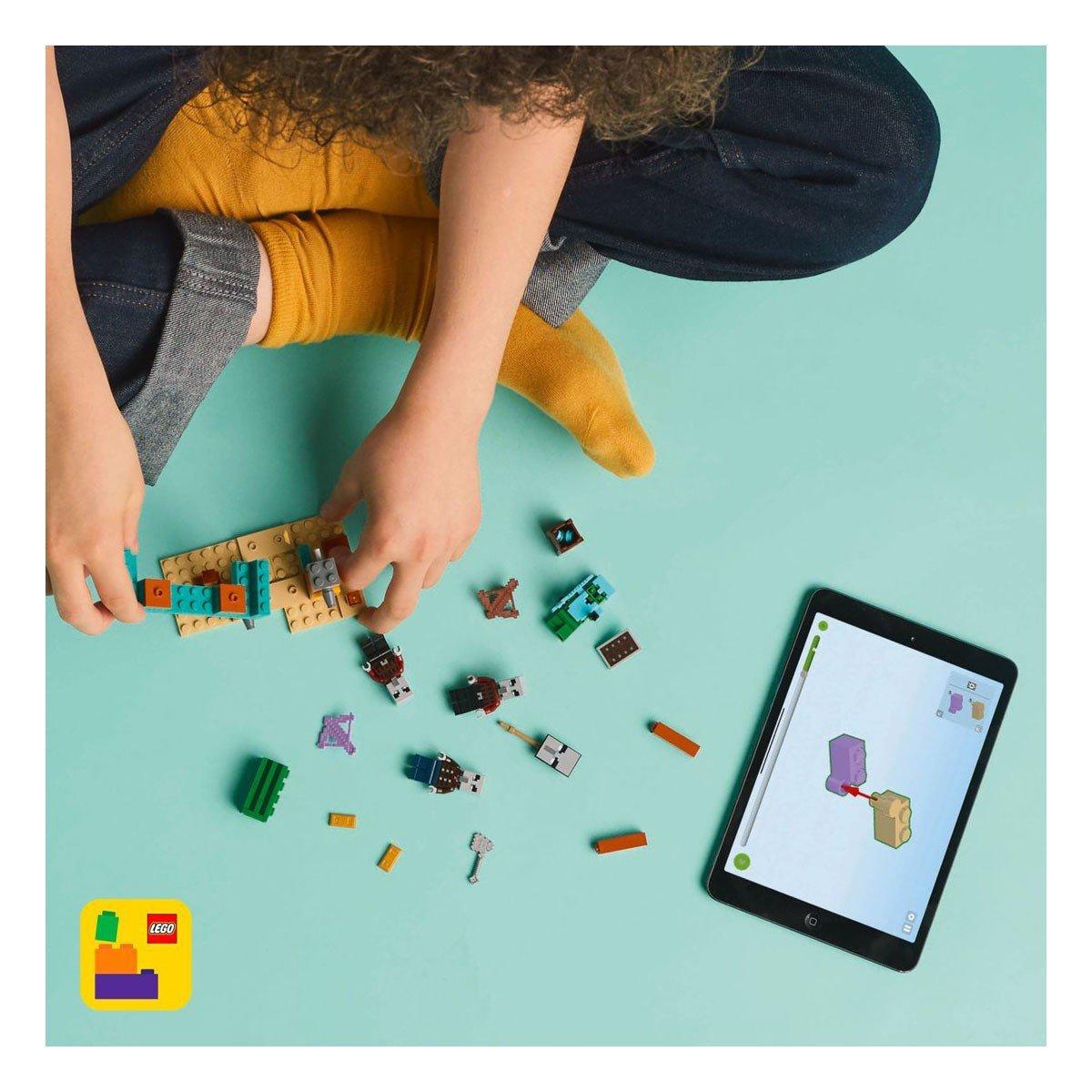 Set in a Minecraft desert outpost, kids role-play being a Cactus Knight, with its diamond armor and shield and sword. When 3 illager figures arrive to steal treasure, kids must defend the outpost. The set includes missiles that kids can launch with a flick of their finger, a variety of weapons and a barrel that holds the treasure. For extra digital fun, the LEGO Builder app lets kids zoom in and rotate models in 3D using their device.