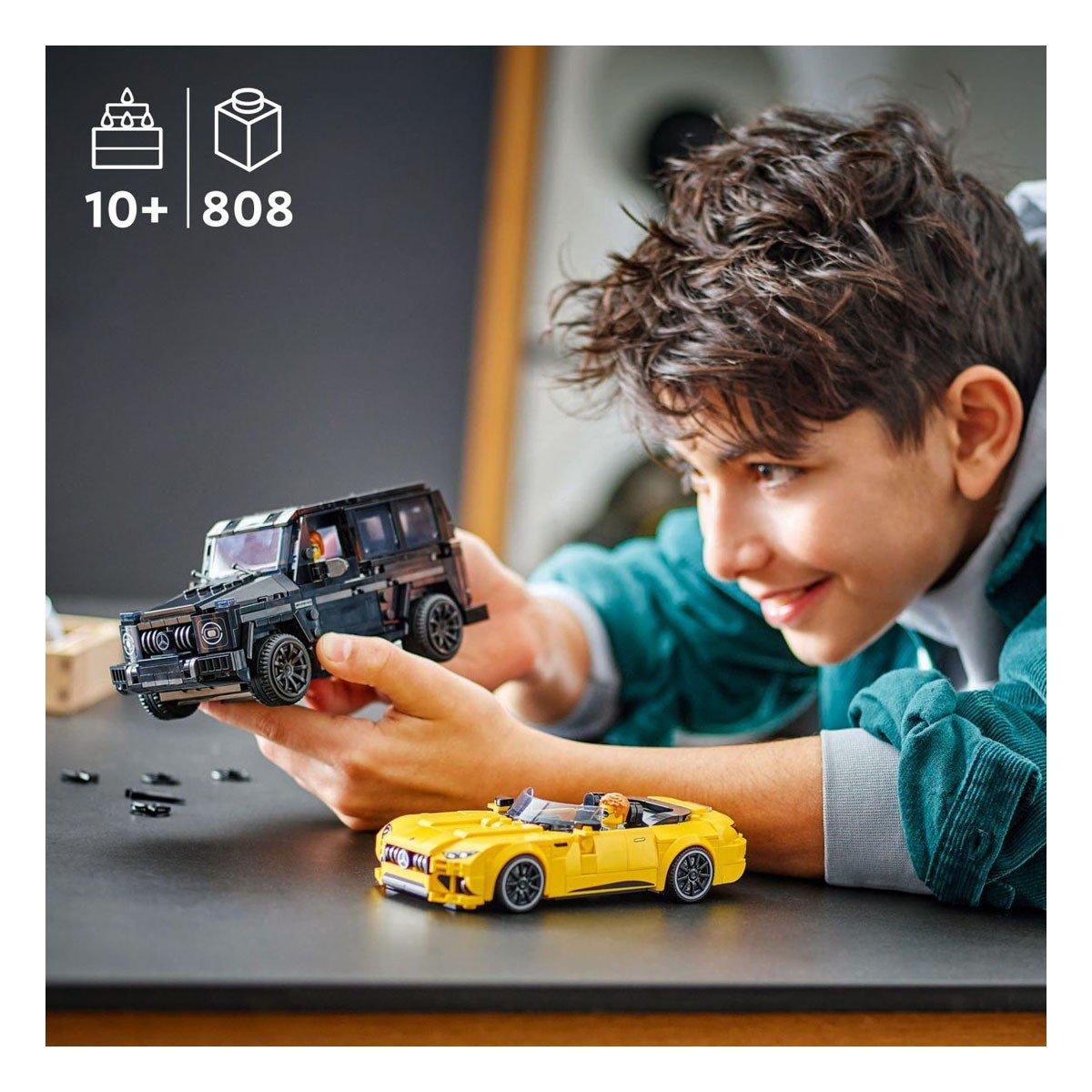 Boys and girls ages 10 and up can now own this awesome Mercedes double pack of buildable LEGO Speed Champions F1 toy cars. Features both the AMG G 63 and AMG SL 63 (76924). This Formula 1 LEGO set with 2 stylish models is ideal for kids, Mercedes fans and passionate adult collectors to build, display and play out action packed races. The Mercedes-AMG G 63 black SUV and the AMG SL 63 yellow convertible roadster models both include authentic design details from the real life versions, including front grilles, hoods, interior features and the famous Mercedes livery. Each Mercedes-AMG car toy also comes with a driver minifigure for kids to place behind the wheel to enjoy races on the track. LEGO Speed Champions convertible toy car building kits let kids and passionate car fans build replica versions of some of the world’s most iconic vehicles. Each LEGO toy car playset can be created using printed building instructions or the LEGO Builder app, which guides you and your child on an easy and intuitive building adventure. Contains 806 pieces.