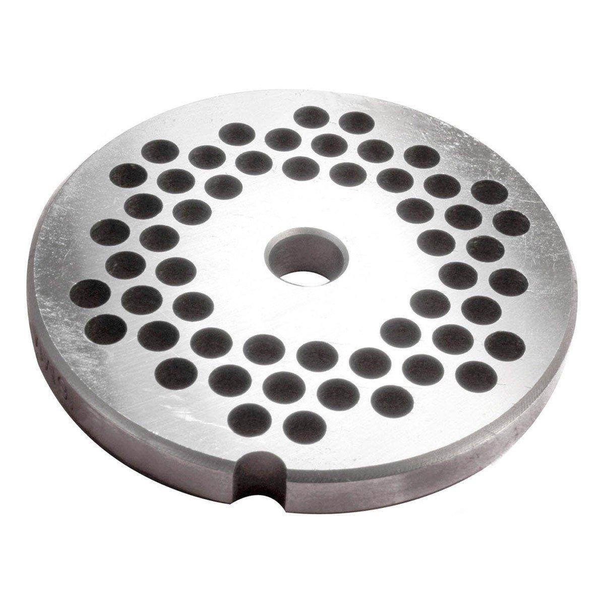 LEM grinder plates are made to LEM's stringent standards for hardness and quality. This plate is hubless, so it can be used on both sides. Remember when changing your knife to change the plate at the same time for optimum performance. Sizes indicate the hole diameter in the plate. Plate diameter is 2 3/8".