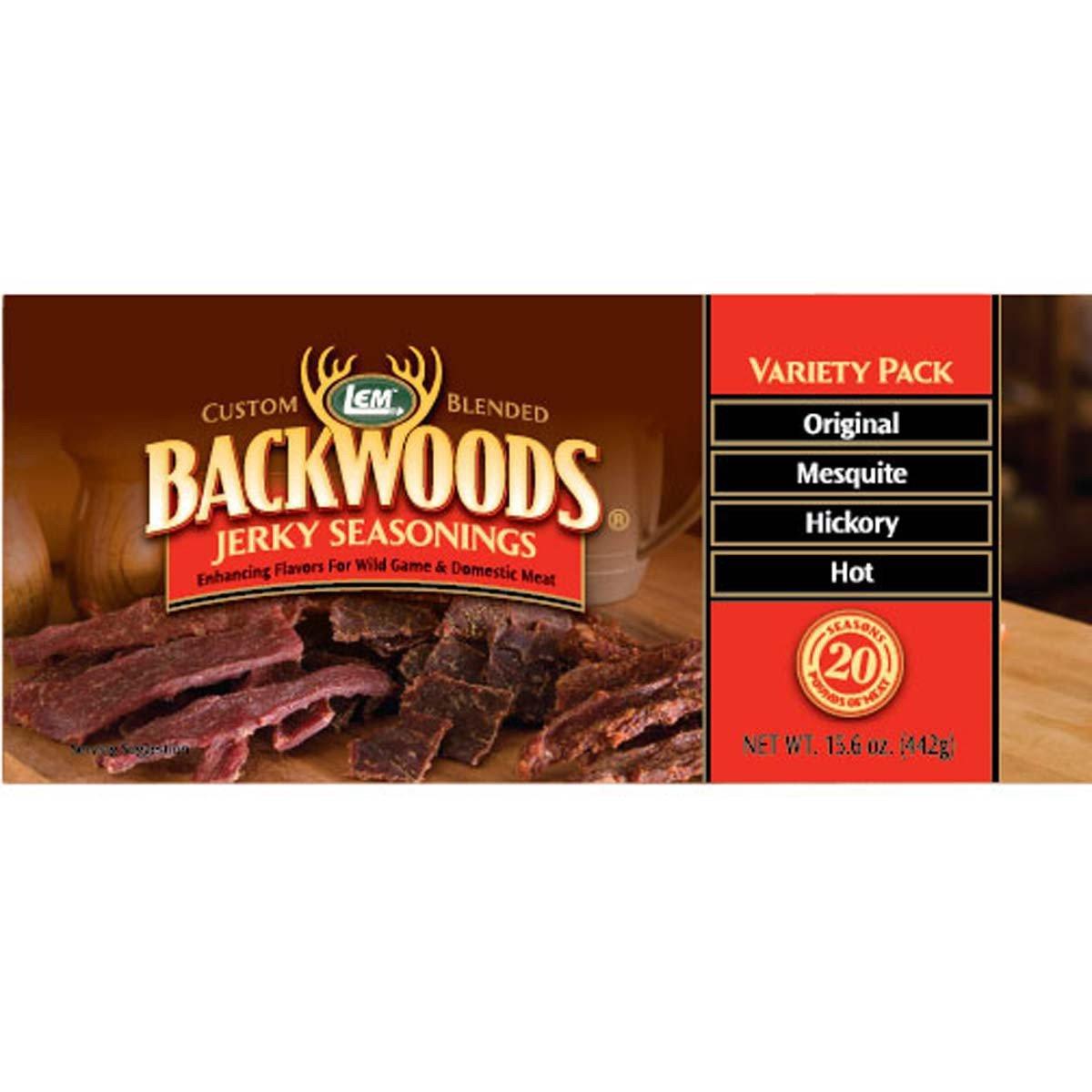 The LEM Backwoods Jerky Seasoning Variety Pack #1 includes four popular jerky blends in one convenient package. Each flavor pack in this LEM jerky seasoning pack has enough seasoning to make five pounds of jerky. Easy-to-follow instructions guide you along the jerky-making process, while the premeasured cure packets make it even easier. Whether you prefer the classic taste of Original, the smoky flavor of Mesquite or Hickory, or the added heat of Hot, the LEM Backwoods Jerky Seasoning Variety Pack #1 will make delicious jerky everyone will love.
