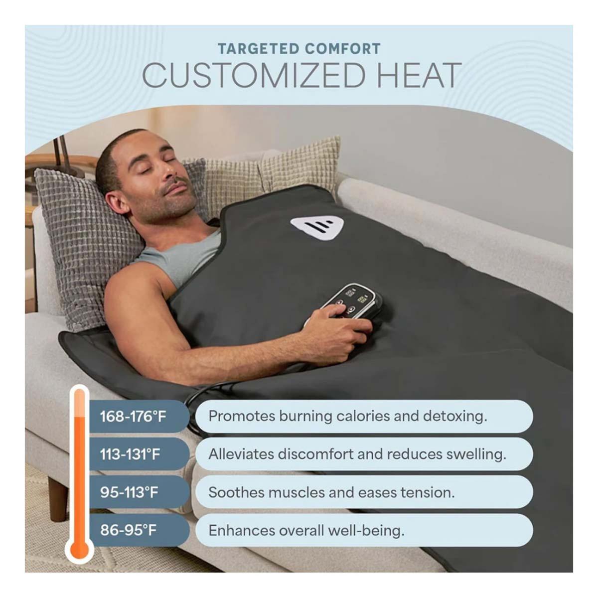 The LifePro RejuvaWrap Infrared Sauna Blanket offers soothing far-infrared heat therapy for at-home relaxation and everyday recovery. Featuring low-EMF carbon fiber heating, adjustable temperature settings, and a waterproof interior, this portable full-body sauna blanket provides comfortable, even warmth to support relaxation, detox routines, and overall wellness.