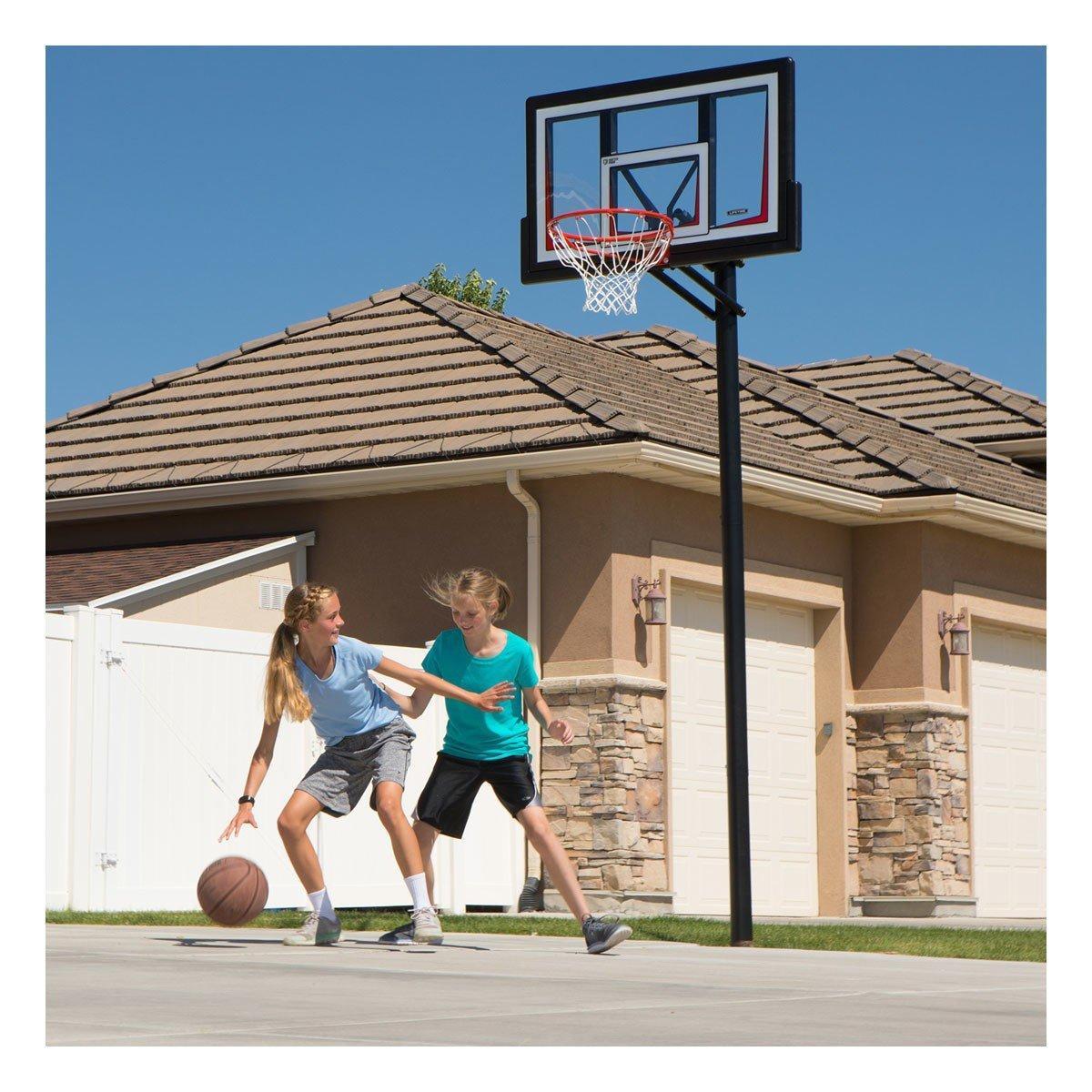 This portable basketball system from Lifetime Products features a 50" Shatterproof Fusion backboard with a Quick Adjust height adjustment mechanism that adjusts from 8 to 10 feet high. It also includes a Slam-It Rim with an all-weather net and a 3.5" diameter round steel pole. So bring the arena to your home with a residential basketball system from Lifetime Products.