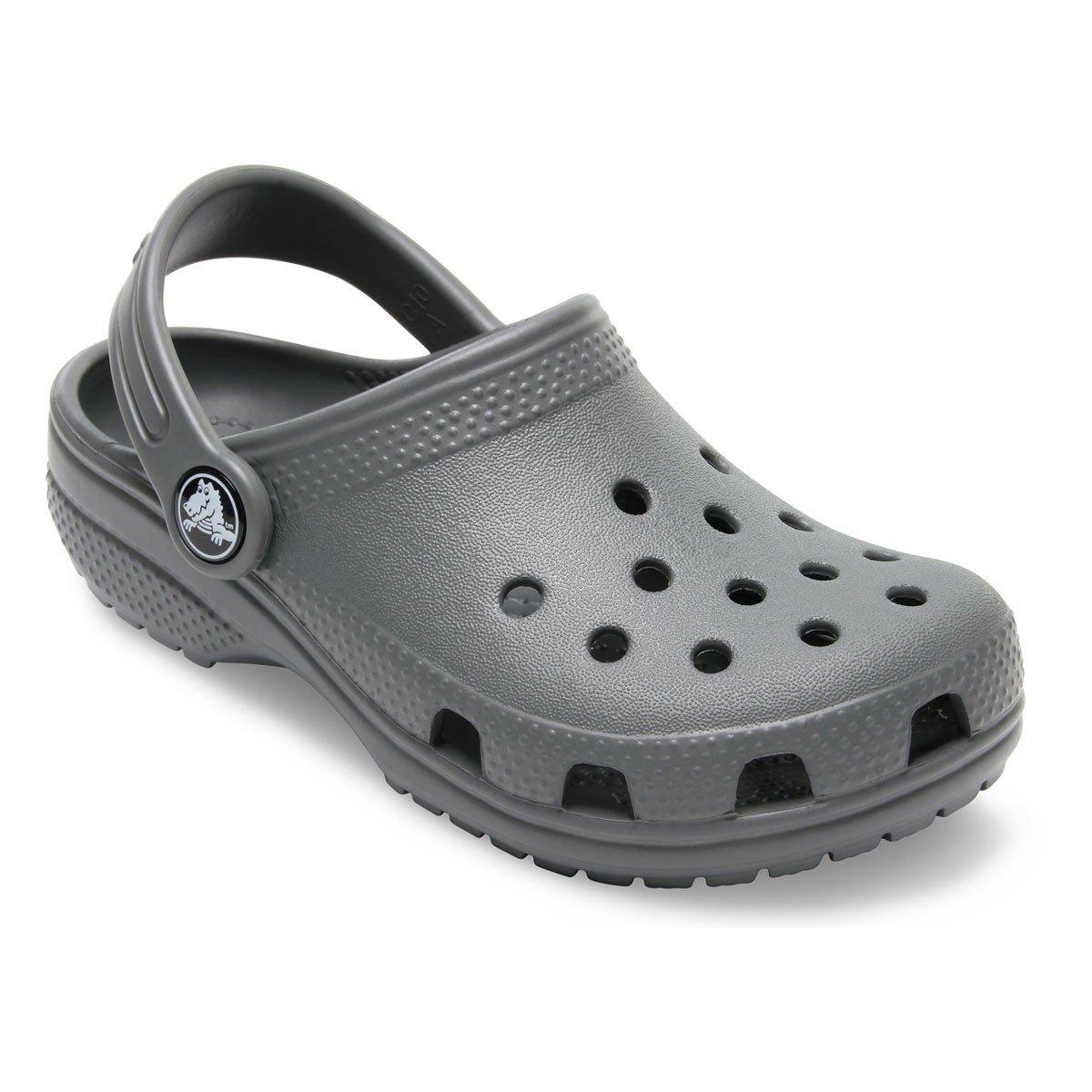 The Kids' Crocs Classic Clogs are perfect for summer adventures. With a convertible strap, your kid can choose to wear their Crocs Classic Clogs like a slip-on sandal or with a more secure fit around their feet. These Kids' Crocs Classic Clogs have built-in arch support for comfort, while the material resists odor. You can even customize their Kids; Crocs Classic Clogs with JibbitzTM charms. Be ready for summer this year with the Kids' Crocs Classic Clogs.
