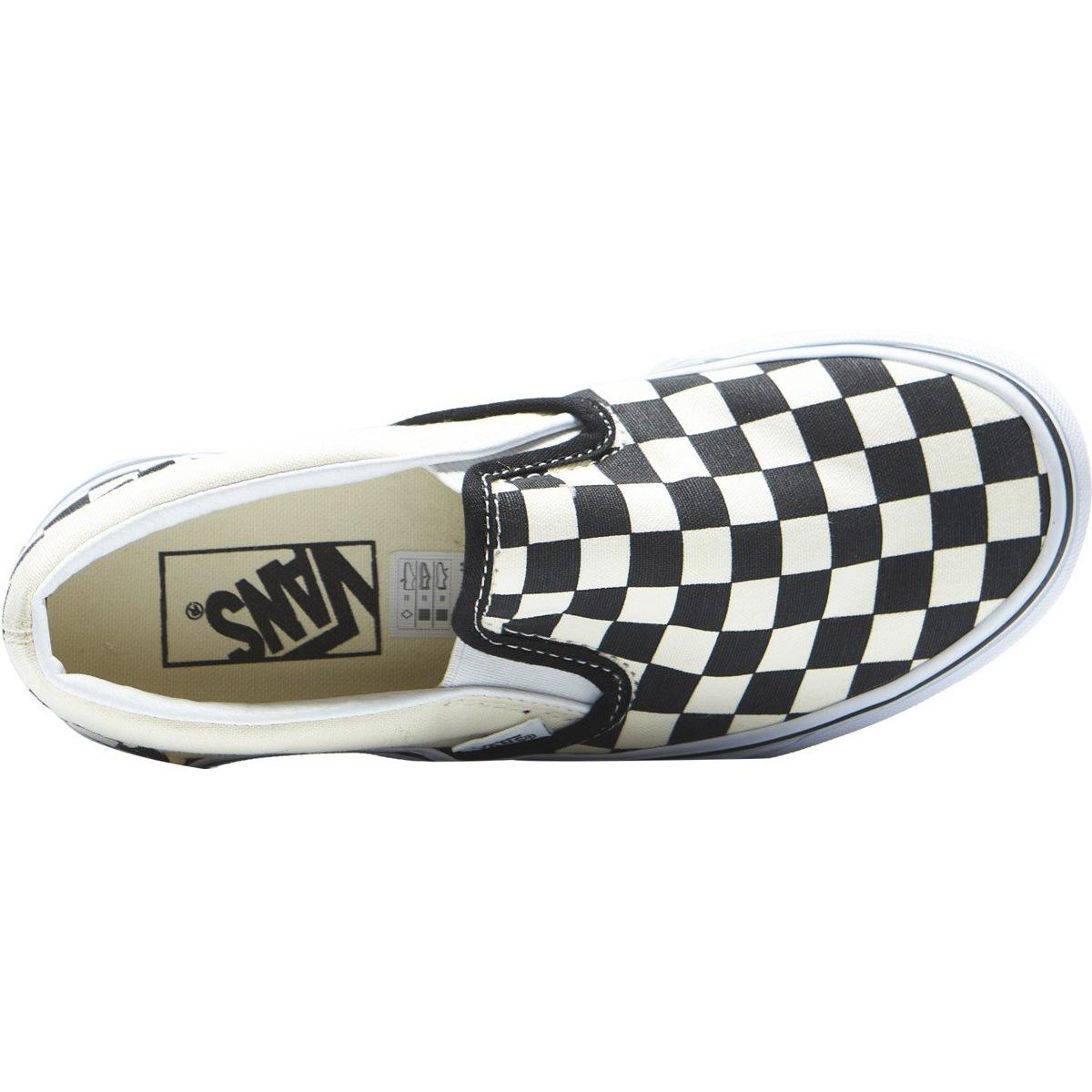 The Kids' Vans Classic Slip-On Shoes is the iconic shoe worn around the country since 1977—sized down for the kiddos. The Kids' Vans Classic Slip-On Shoes feature elastic side accents and supportive padded collars so your feet slip in easily and comfortably. Plus, the low-profile canvas upper and signature rubber waffle outsoles deliver that classic Vans style you love. Dress your little one up in style with the Kids' Vans Classic Slip-On Shoes.