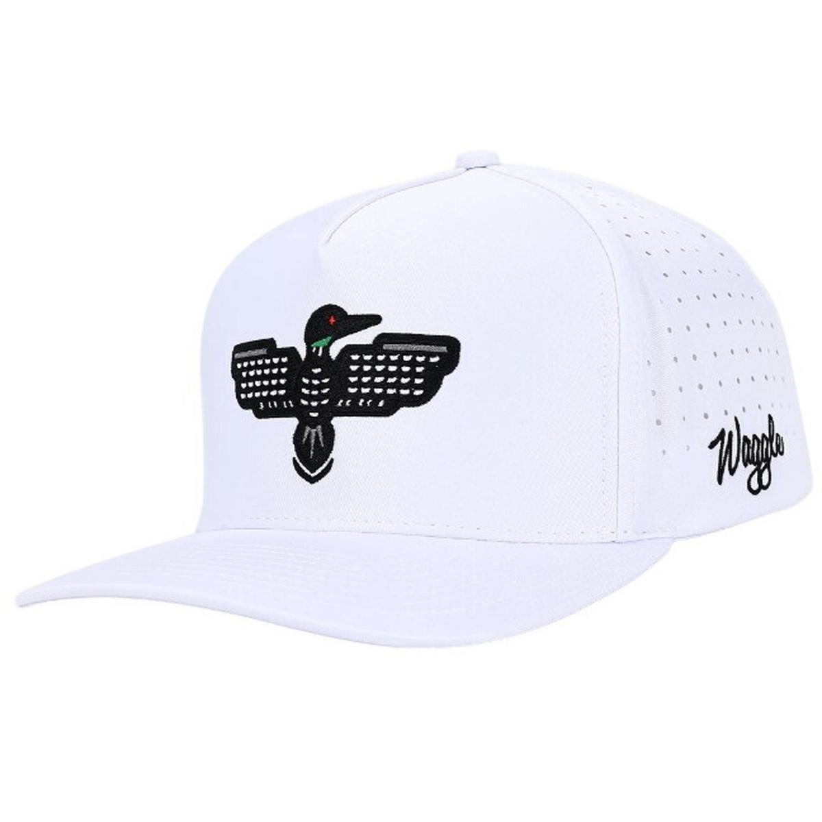 {"reviews":[],"offset":0,"limit":10,"total":0}"Full Description:\nThis time's the charm, don't you think? Waggle's fan-favorite fowl goes for the trifecta with the third evolution of our best-selling Loon Lake Hat.\n\nFeatures:\n\u003cul>\n\u003cli>Style: Snapback\u003c/li>\n\u003cli>Fit: Mid-Profile\u003c/li>\n\u003cli>Size: One Size Fits Most (up to 7 and 3/4 head size)\u003c/li>\n\u003cli>Material: Polyester-Spandex Blend\u003c/li>\n\u003cli>Perforated back panels for enhanced breathability\u003c/li>\n\u003cli>High-quality embroidery\u003c/li>\n\u003c/ul>\n\nSpecifications:\n\u003cul>\n\u003cli>Hand wash with warm water, gently spot treating with drops of laundry detergent or stain remover.\u003c/li>\n\u003c/ul>\n"