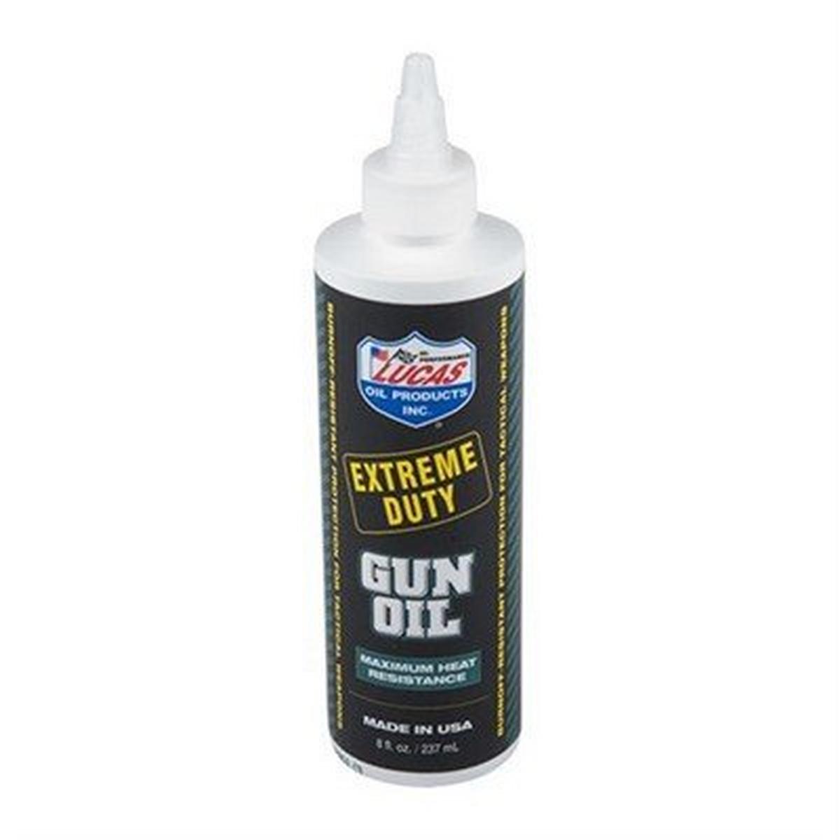 Lucas Extreme Duty Gun Oil is a special blend of oil and petroleum-extracted additives producing a lubrication specially formulated for high volume high heat and friction firearms.
