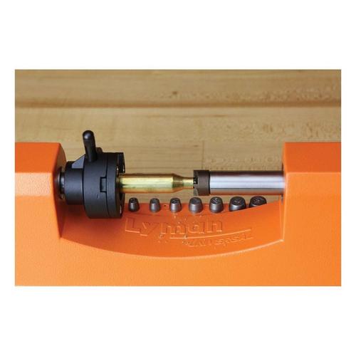 Lyman's Universal Trimmer features the patented Universal Chuckhead which handles any case from .17 caliber to .458. No costly collets required! Features coarse and fine adjustments. Adjusting ring lets you "dial in to an approximate setting for quick repeatability". Includes 9 of the most popular pilots. Additional pilots add even greater range of calibers. Optional power adapter lets you upgrade to power in seconds. (*Please note: Additional pilots or power adapter sold separately). Whether you need to reload ammo for a 9MM or a .458 Magnum, shop the Lyman Universal® Trimmer for a versatile case trimmer. Pilots Included: 22, 24, 27, 28, 30, 9mm, 35, 44, 45A.