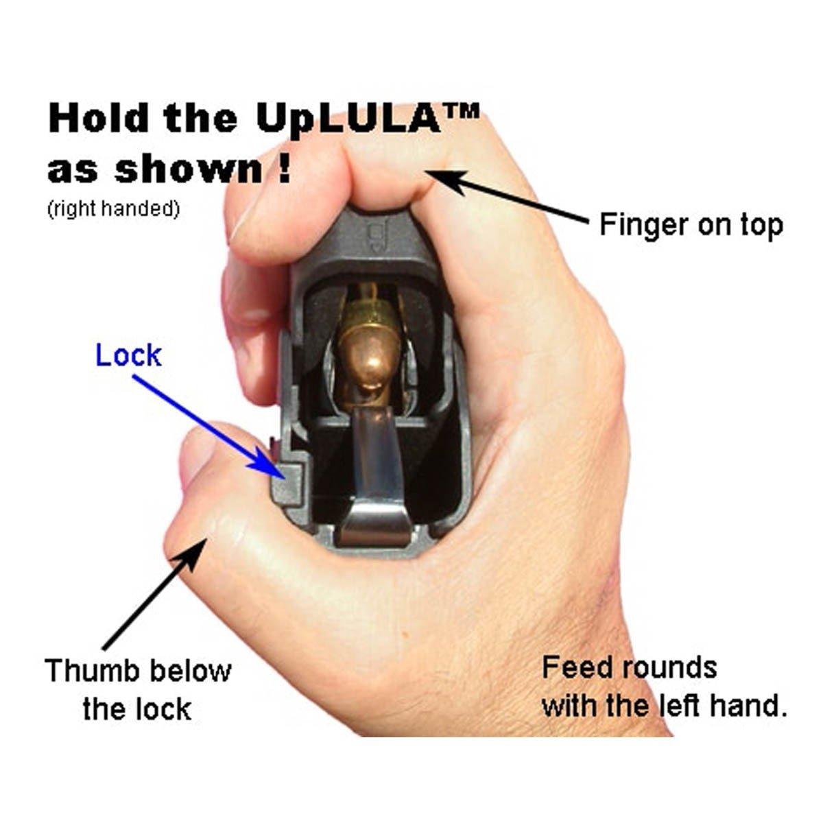 The maglula UpLULA® Universal Pistol Magazine Loader offers fast loading of most handgun magazines from 9mm to 45 ACP. The UpLULA is designed with a smooth feed ramp that protects your thumbs against the metal surfaces of the magazine and pushes the round down more easily. Perfect for newer magazines with a tighter spring, the UpLULA® loads up to one round per second, almost three times faster than loading by hand. Plus this magazine loader stores compactly and easily fits in your hand, pocket, or range bag and has a magazine unloader on the bottom. The maglula UpLULA® Handgun Magazine Loader is the ultimate tool to speed up your magazine loading and unloading.