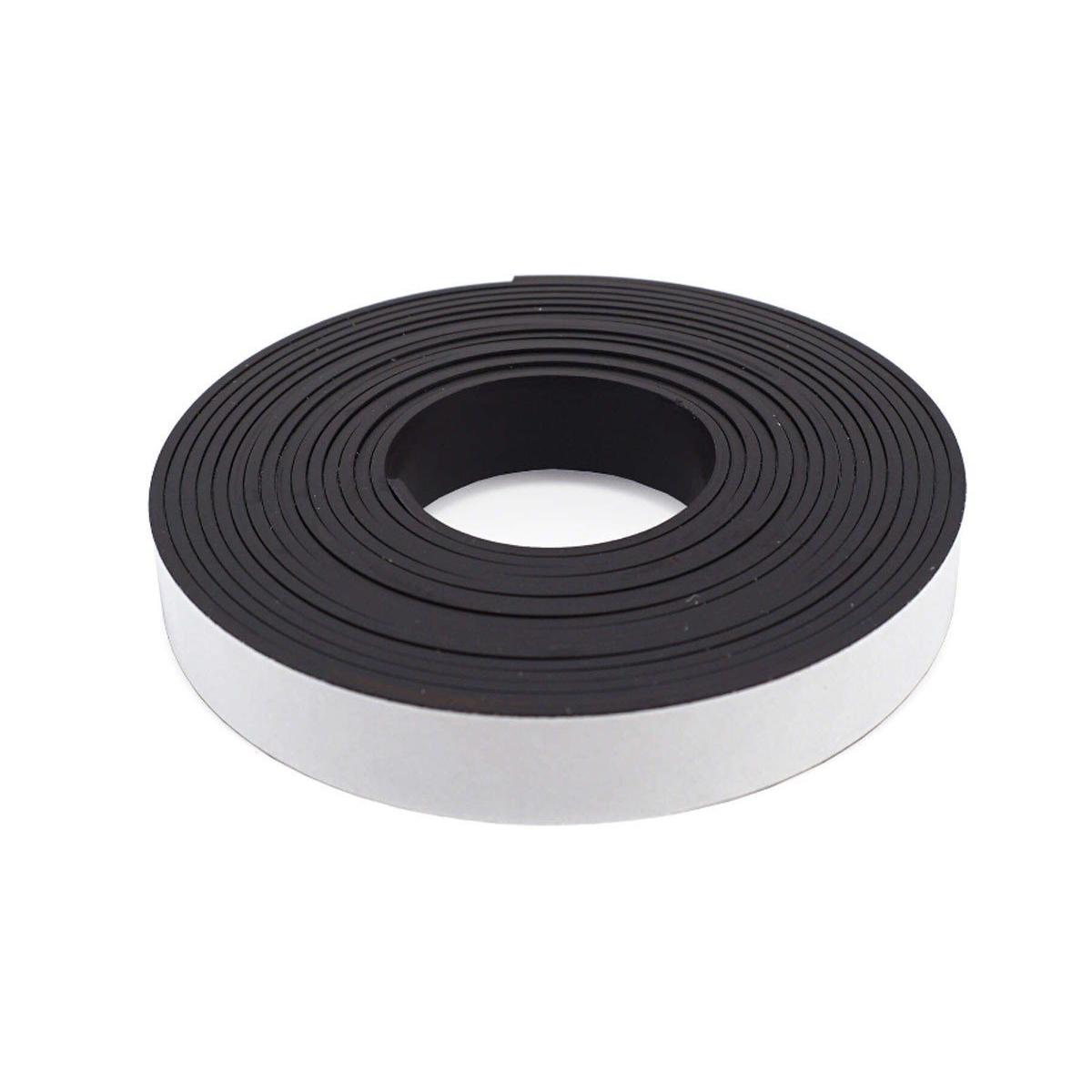 Flexible magnetic tape rolls are great for making small & lightweight projects magnetic. Adhesive on one side and magnetism on the other. Cuts easily with scissors to any desired length. Long rolls are perfect for schools and professional crafters. Great for use at home, school, office and shop. More About Flexible Magnets: Flexible materials offer a uniquely desirable combination of properties at lower cost than other magnet materials. The flexibility and machinability of these materials allow manufacturing techniques not possible with rigid or brittle materials. Flexible magnet material is used in a variety of applications from labeling, holding, door gaskets, and signs, to micrometers and CRT focusing. Practical uses include crafts, toys, games, magnetic signs, displays, production control (or visual aid) systems, warehouse shelf labeling, movable markers, advertising premiums, magnetic business cards, architectural planning layouts and more