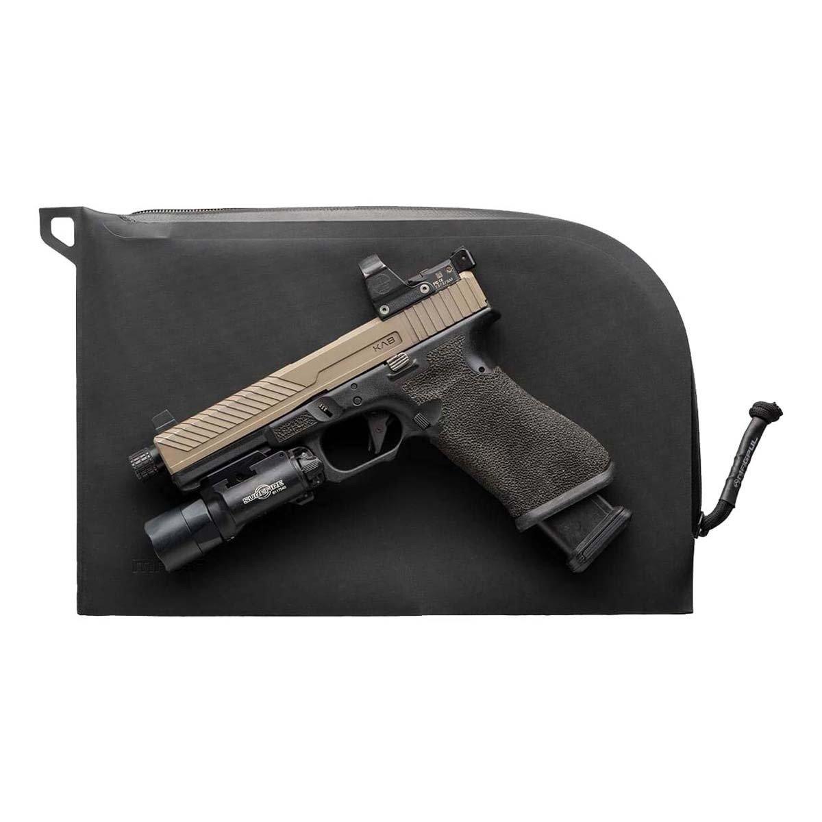 The streamlined design of the DAKA Single Pistol Case makes it ideal for use inside larger hard cases, during vehicle transport, or storage inside gun safes. Its internal, snag-free, protective EVA foam liner adds a layer of security and a barrier against damage. Constructed of durable DAKA material and featuring a water-resistant YKK® AquaGuard® zipper, a 550 paracord zipper pull, and a pull-tab that doubles as a carabiner pass-through, the DAKA Single Pistol Case is rugged, water resistant, and the perfect storage solution for your pistol and more.