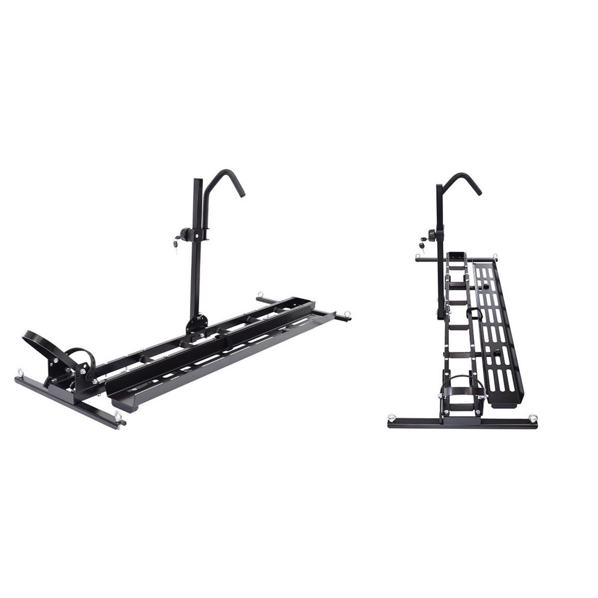 The Malone EcoLight™ trailer serves as the base for this package. Also included are three heavy-duty E-bike racks, each capable of transporting a bicycle, fat bike or E-bike up to 80 lbs. each. A lockable padded arm, front wheel cradle, and four tie-down cam-buckle straps hold the bike firmly in position. The EcoLight™ trailer features a “plug-&-play” LED submersible lighting system, 58" galvanized steel load bars and leaf spring suspension. The EcoLight™ trailer and E-bike racks are backed by a Five-Year Limited Warranty.
