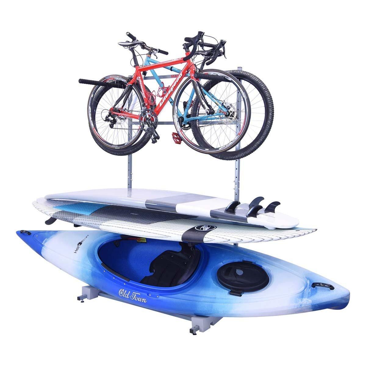 This rack provides a safe location for your boards, bikes & kayak and helps reduce damage from long term storage. Assembly is a simple process using our illustrated instructions. Built with powder coated high load steel and corrosion resistant hardware, this package is designed to last for years. Includes a Limited Lifetime Warranty.