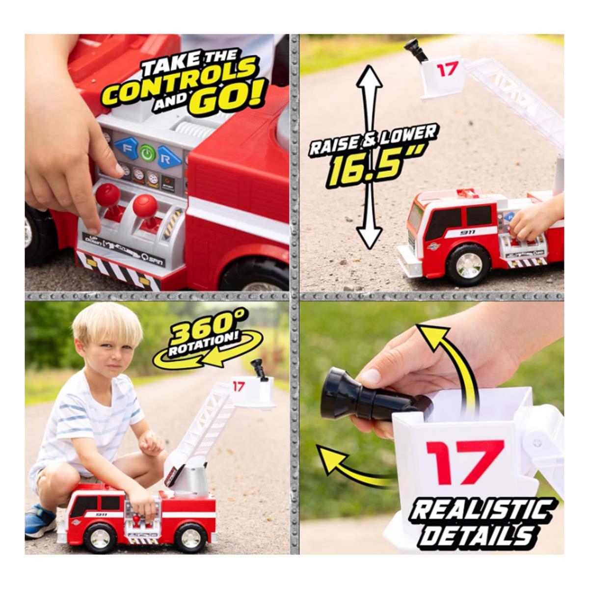 {"reviews":[],"offset":0,"limit":10,"total":0}"Full Description:\nControl the action with this Firetruck toy! With joystick operation and fun features, it offers hands-on excitement and imaginative play for hours of interactive adventure.\n\nFeatures:\n\u003cul>\n\u003cli>Lights\u003c/li>\n\u003cli>Sirens\u003c/li>\n\u003cli>Motorized Movement\u003c/li>\n\u003c/ul>\n\nSpecifications:\n\u003cul>\n\u003cli>Ages 3+\u003c/li>\n\u003c/ul>\n"