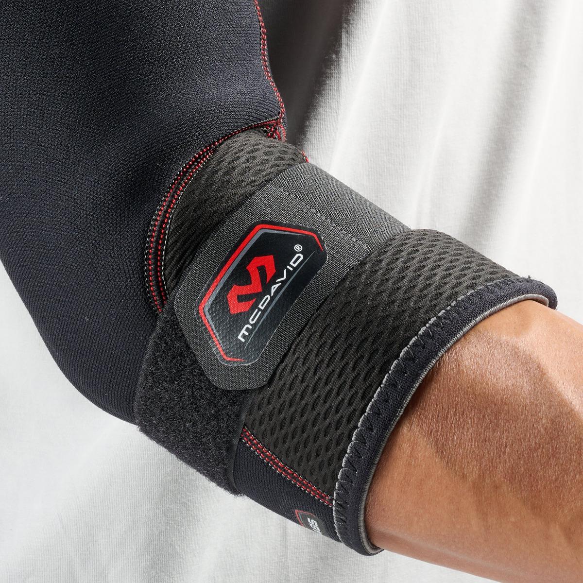 The McDavid Elbow Support Sleeve with Strap delivers soft tissue support to help relieve painful tennis elbow and golf elbow symptoms.